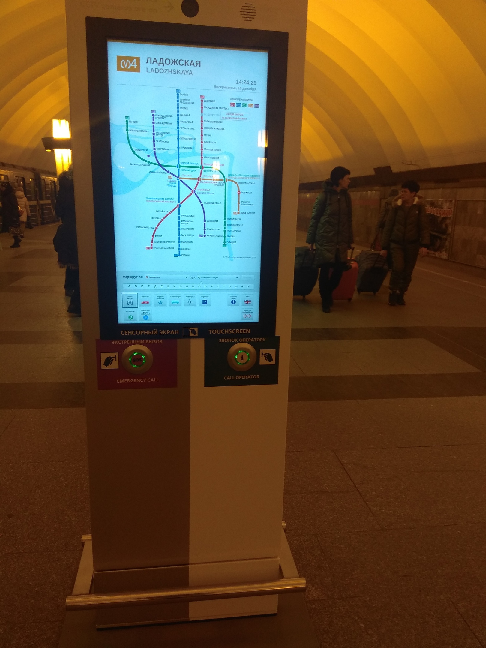 Некорректное сравнение. Данный "ИнфоСос" начал устанавливаться еще раньше первых петербургских. Наоборот, в ПМ гораздо позже появились новые "ИнфоСосы" с большим сенсорным дисплеем, нежели в ММ.