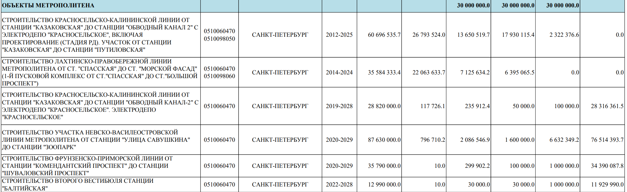 Документ опубликован на сайте Смольного 21 сентября. Адресная инвестиционная программа теперь не выкладывается с разбивкой по объектам, но судя по ведомственной структуре расходов, на строительство подземки заложено 30 млрд. Эту информацию подтвердили в комитете финансов.
