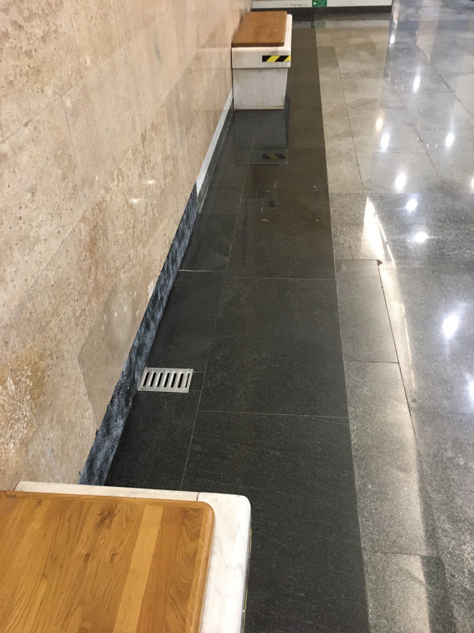 Все эти загородки сделали только для того что бы сделать водоприёмники и что бы водица не текла по платформе и не пугала пассажиров.