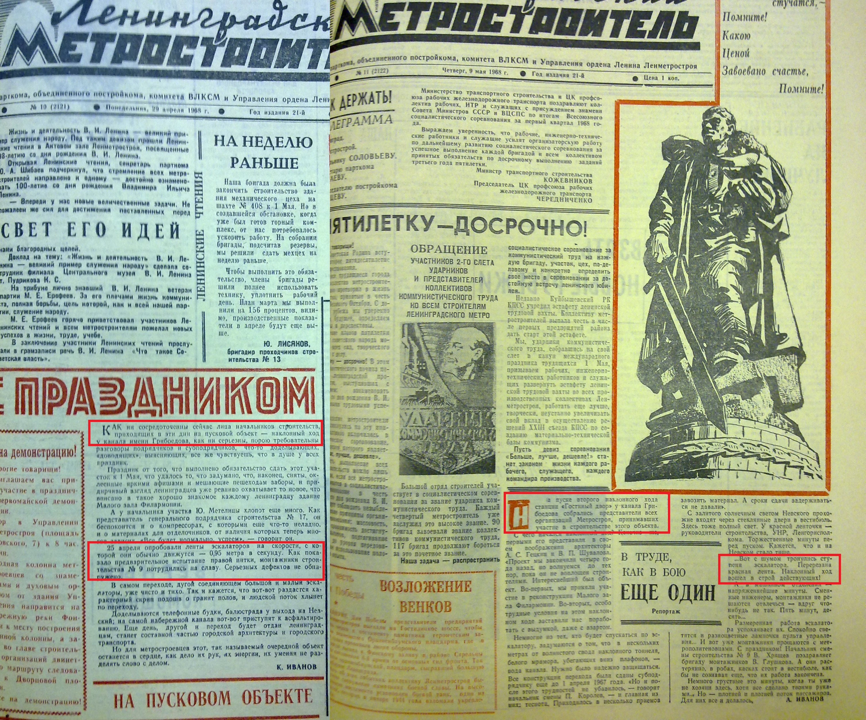 в40 писал(а):Выход на канал Грибоедова открыт 30 апреля 1968 года. Я даже фото из двух статей из газеты "Ленинградский метростроитель" за 1968 год публиковал в одной из тем.