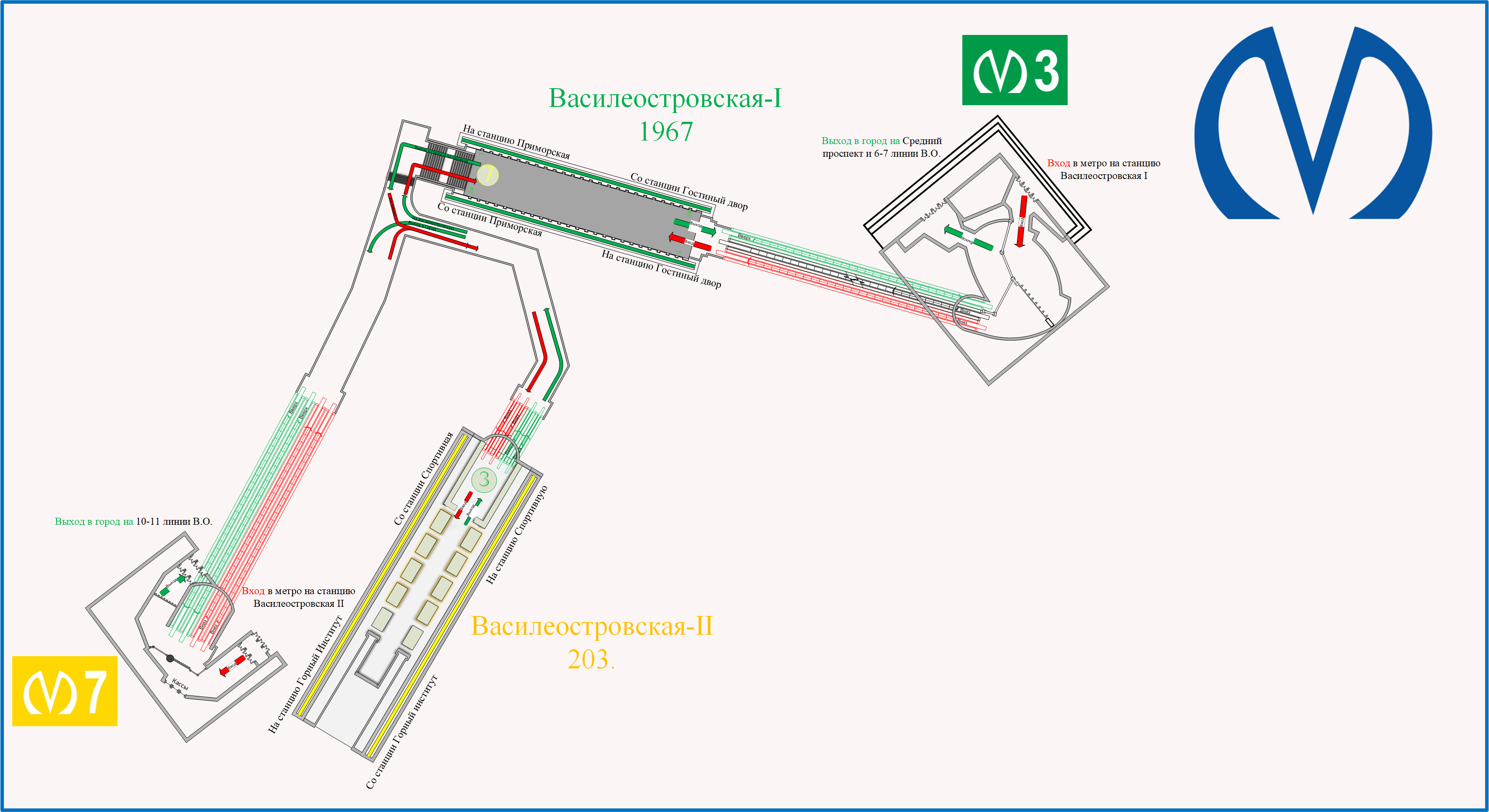 Представляю схему станции Василеостровская, с переходом на кольцевую, и вторым выходом. Схема творилась по материалам, которые предоставил Gleb. Так же отдельно спасибо Глебу за консультацию и корректировки. Схема соответствует на 98% от проекта. Возможны корректировки проекта.