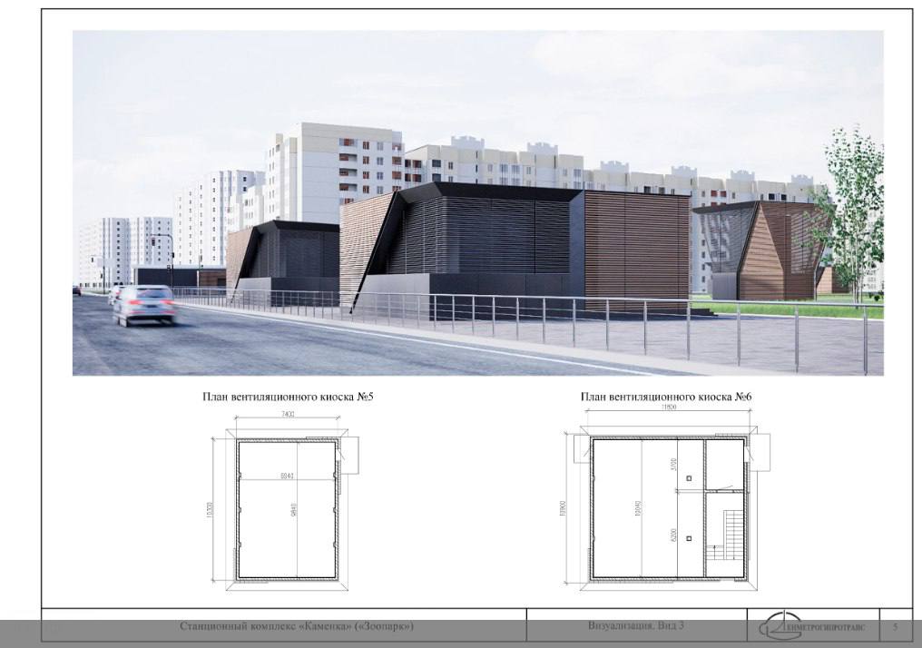 Вторая отсечка — это «Зоопарк», к которому линия завернет через Юнтолово, проскочив под ЗСД. Она, как и «Яхтенная» — мелкого заложения, на ней также четыре эскалатора. И вестибюль тоже будет находиться под землей, двери в него — через подуличный переход, который разместят под перекрестком Комендантского и Шуваловского проспектов.«Главным акцентом композиции по наземным павильонам и венткиоскам является парящий над открытым лестничным спуском навес, выполненный из металлического каркаса с отделкой из металлических монохромных панелей. Примыкающий к зоне входа венткиоск своей формой подчеркивает динамичную форму входной композиции».