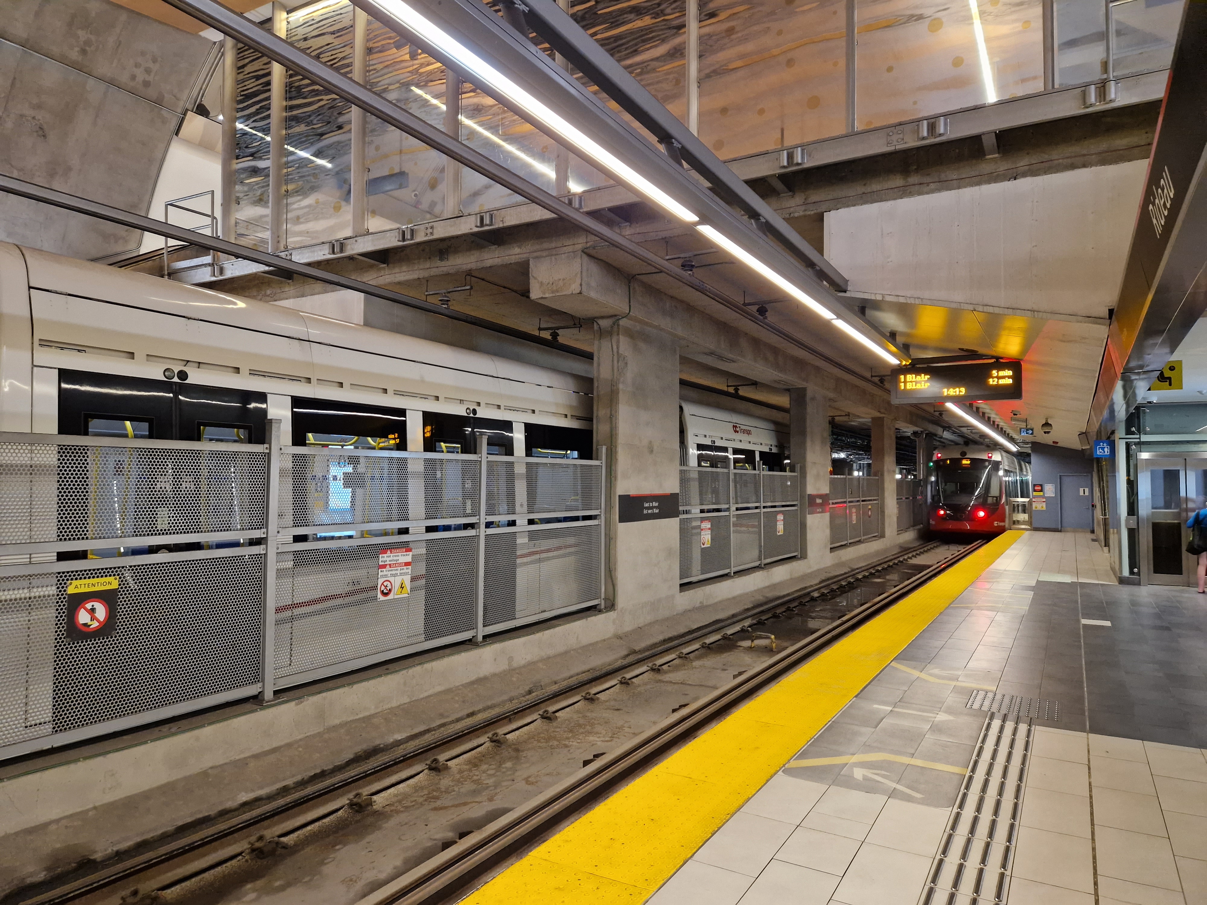 Трамвайчик ходит хорошо, нагрузка небольшая, стоит 3.70 долларов (не настоящих, а канадских), проездной есть только месячный, расположение пары станций на местности несколько странное, но жить можно.