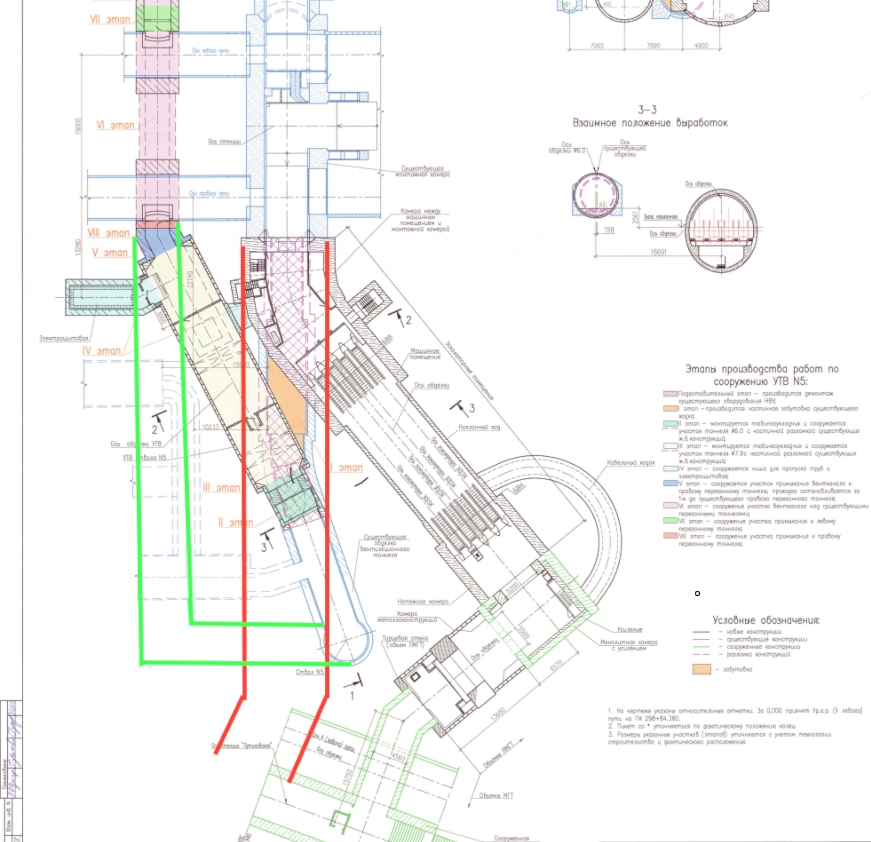 Теперь же известно поэтапное сооружение. Интересно как там проходка к стволу шахты 5. Поздно вечером слышно все больше отчетливых отбойных молоток в служебных помещениях Кировского Завода и чуть-чуть с пассажирской платформы