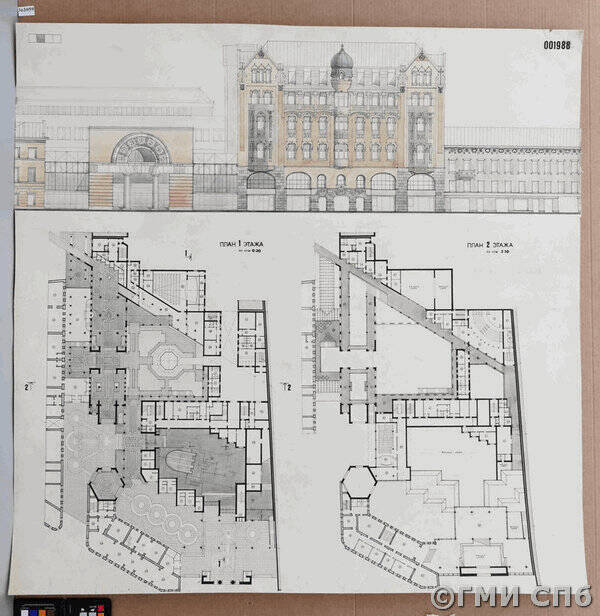 К проекту аэровокзала прилагается следующая подпись: «В нижней части листа — два четырехэтажных фасада в классицистическом стиле, окна первого этажа арочные, здесь располагаются административные помещения аэрофлота, касса, ресторан». Где предполагался вестибюль «Площади Мира-II», тогда ещё не определились