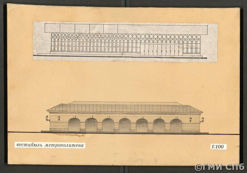 Чертёж вестибюля станции «Кировский завод» Ленинградского метрополитена из рабочего проекта, 1952