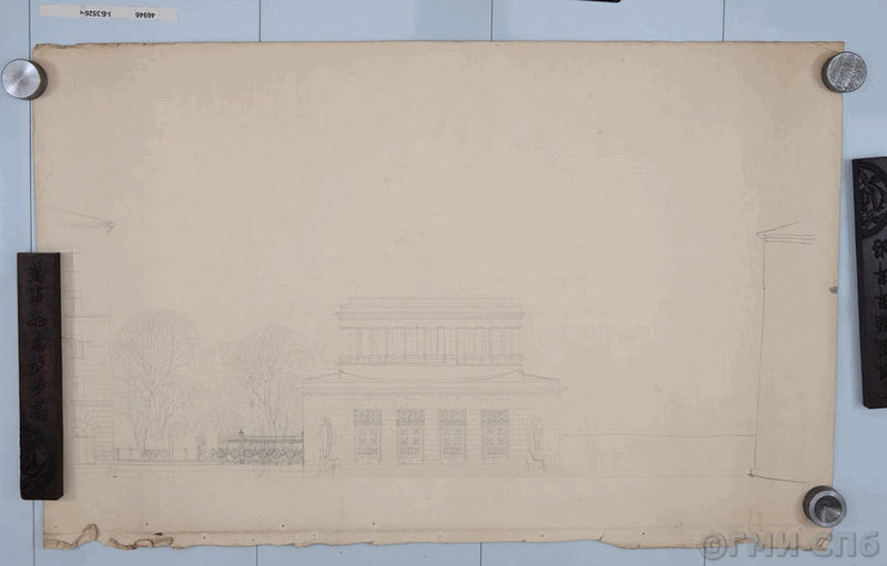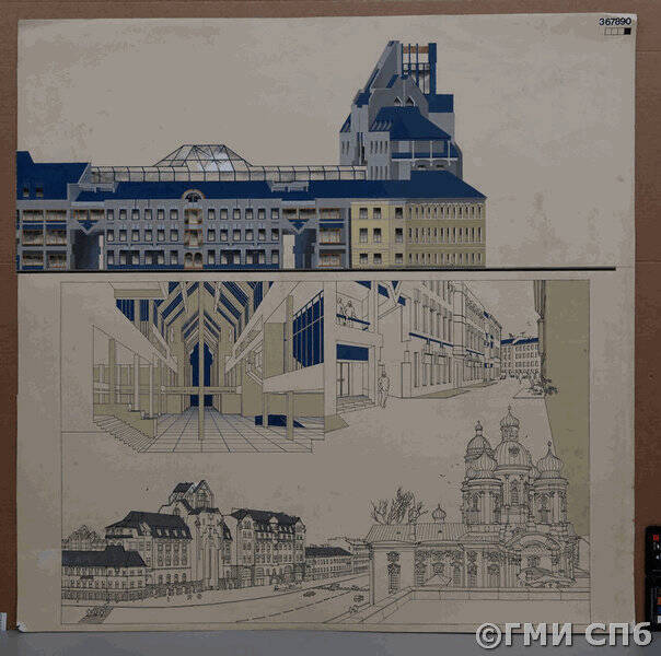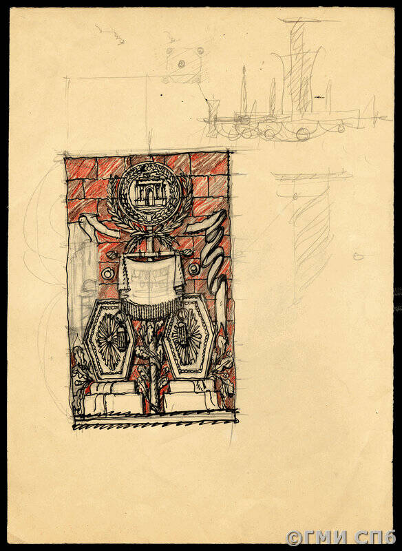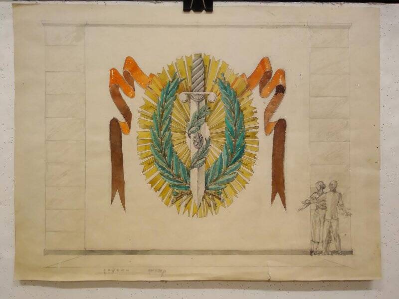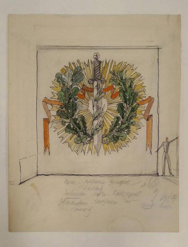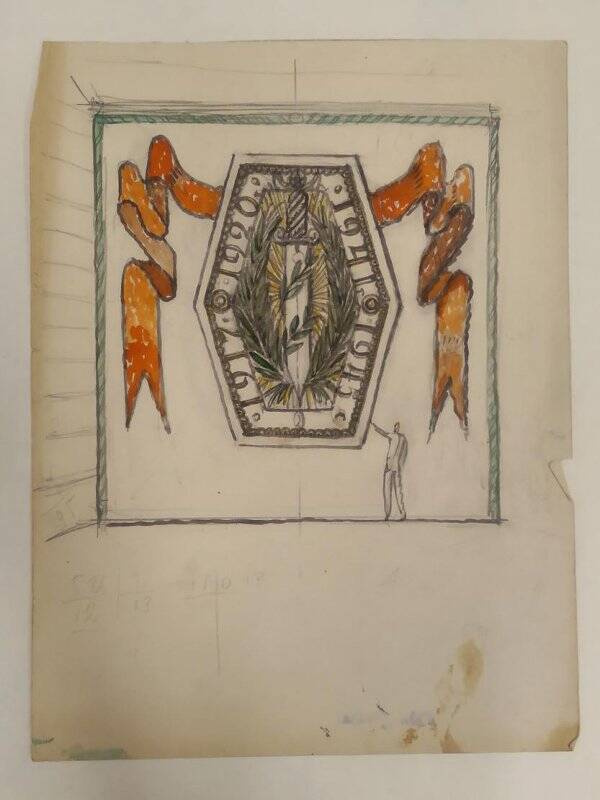 Эскизы мозаики в торце, а также вестибюля снаружи
