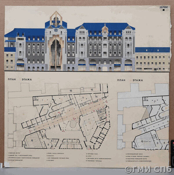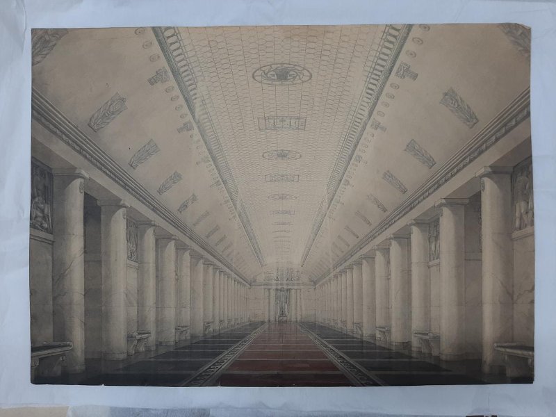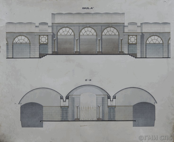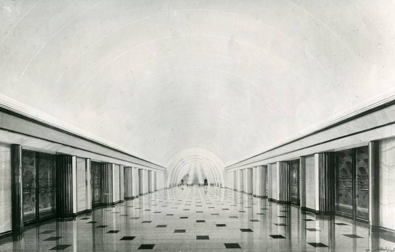 Чертёж вестибюля станции «Кировский завод» Ленинградского метрополитена из рабочего проекта, 1952