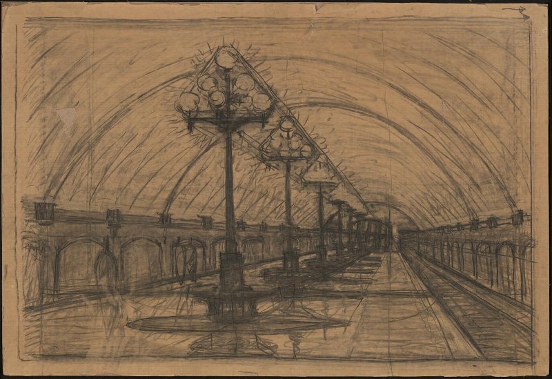 Схожий с предыдущим вариант. Не знаю, чем именно планировали отделывать станцию, но эскизы выглядят очень мрачными