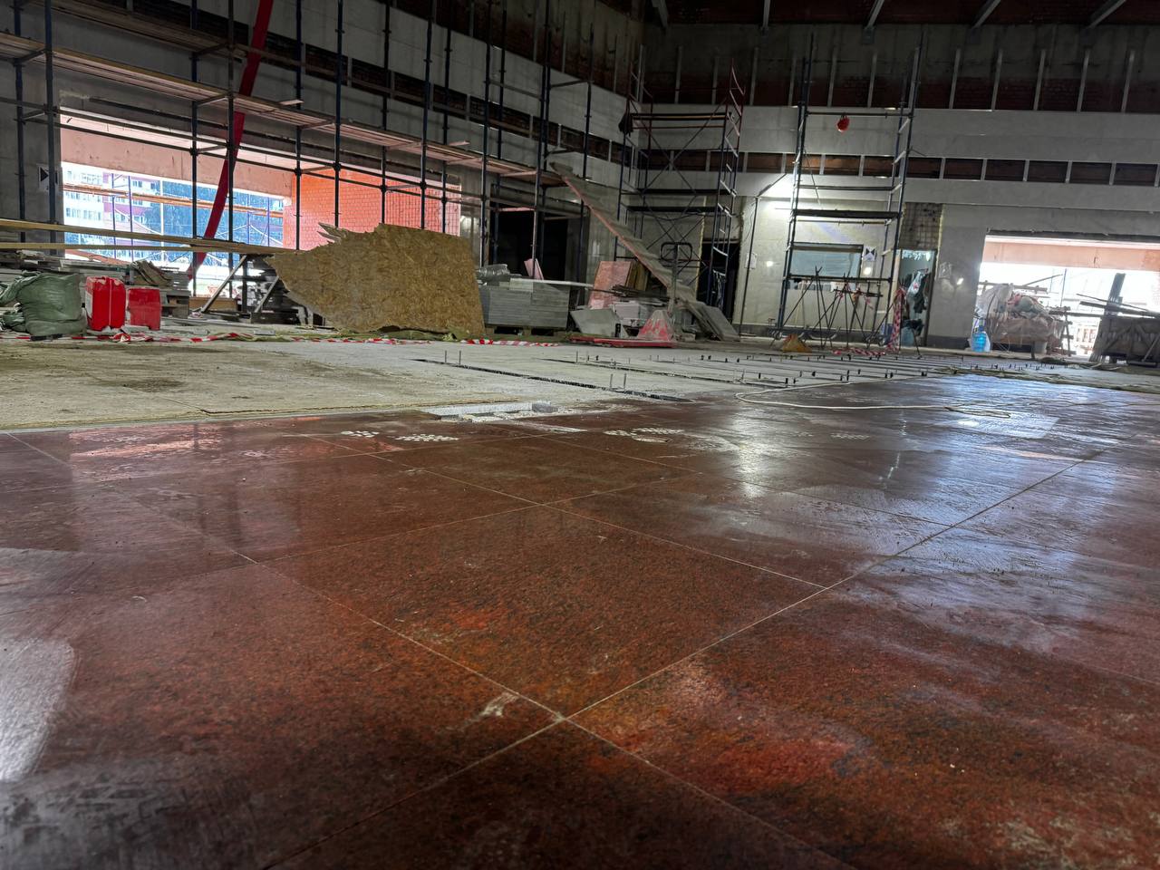 Внутри помещений инженерного корпуса метрополитена продолжаются отделочные работы, в той или иной степени выполнена отделка цокольного и 1-3 этажей, на 4 проступают к кладке внутренних перегородок, на 5 этаже завершается сооружение верхнего перекрытия.