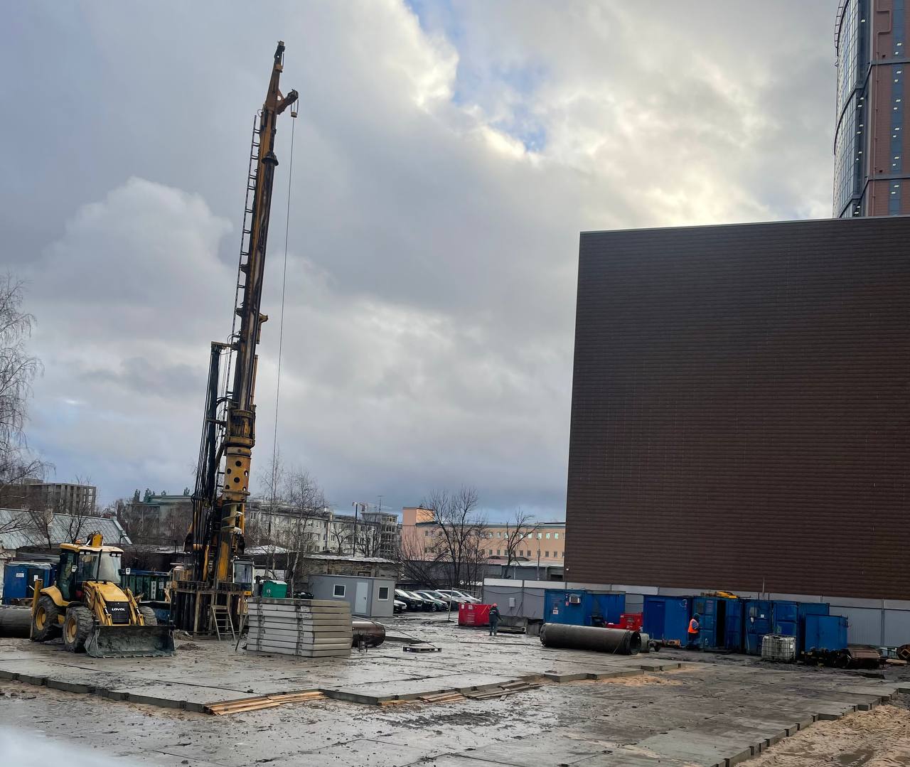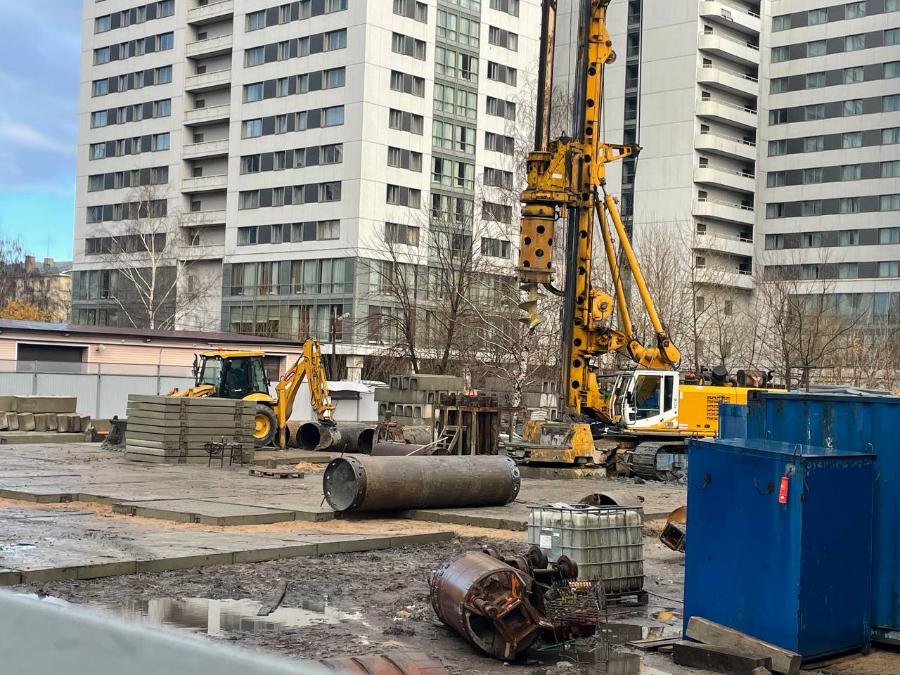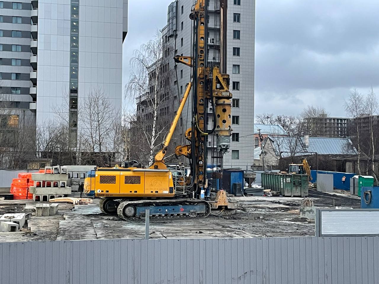Продолжается работа по формированию водонепроницаемой стенки с помощью буросекущих свай.