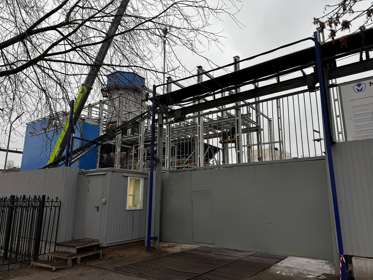 Продолжаются работы на строительной площадке ствола шахты №5 Кировско-Выборгской линии Петербургского метрополитена.