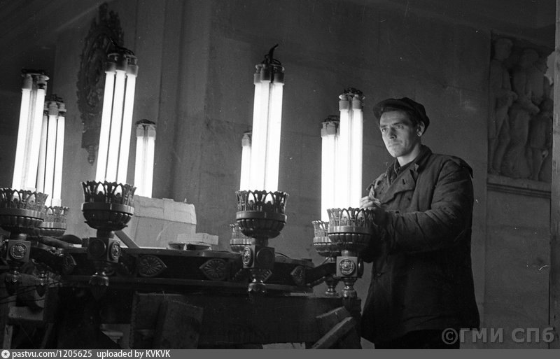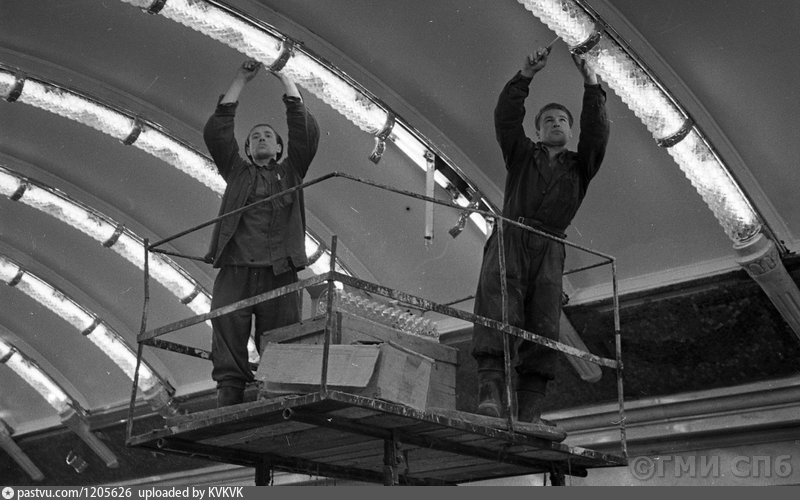 Кто-то на форуме говорил, мол, в пятидесятых люминесцентного освещения еще не было. Как видим, было. Что, в принципе, подтверждается и самим дизайном светильников на Нарвской, Площади Восстания и т.д.