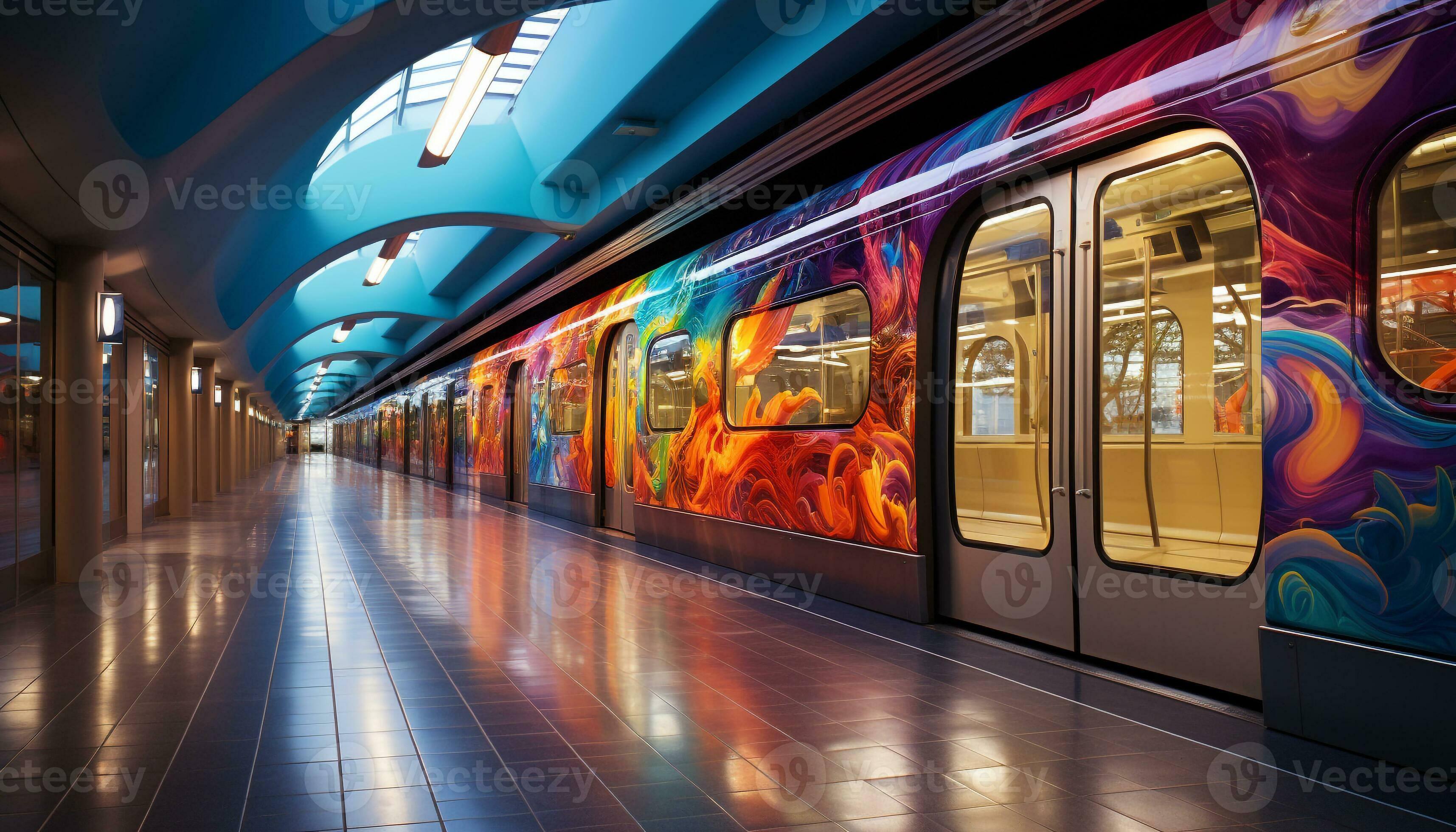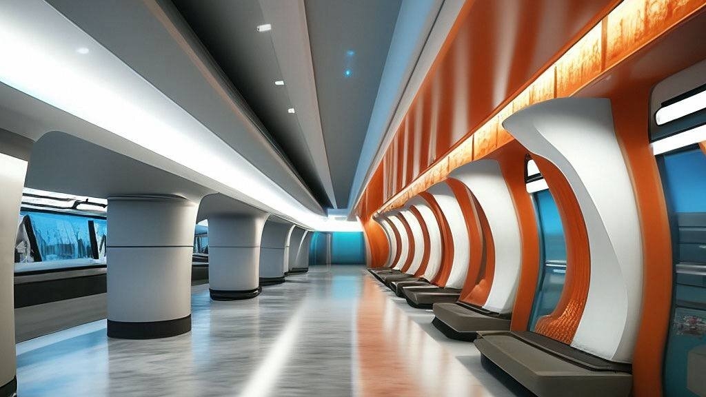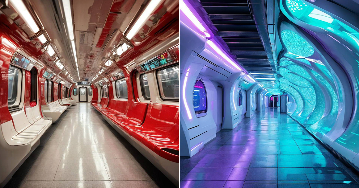 Станции очень яркие и необычные, а вагоны футуристичны.