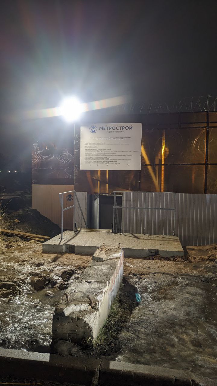 На Каменке со стороны входа в "Ленту" появилась инфо табличка, проходная и маркировка забора в логотип Метростроя.