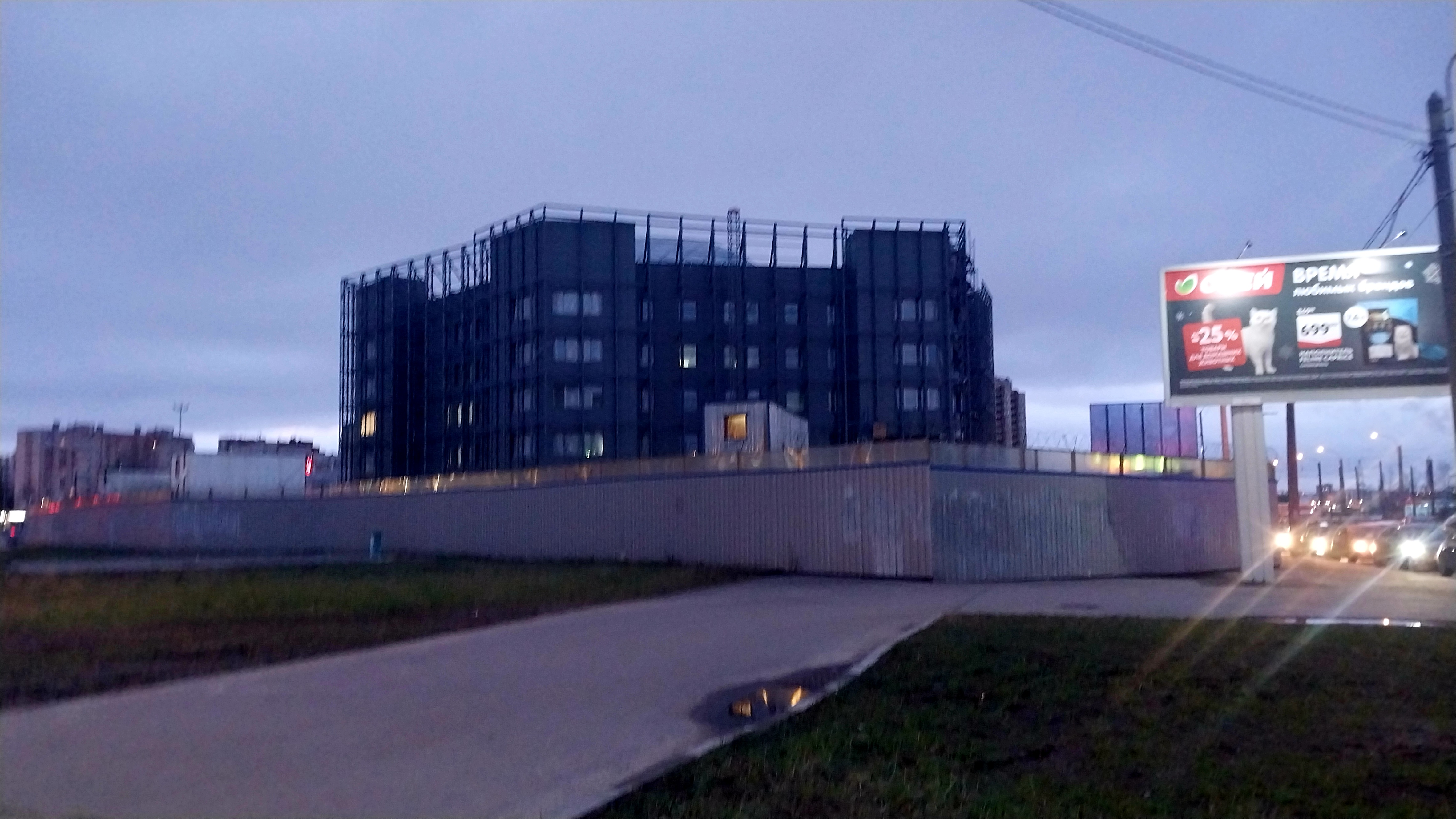 Продолжаются работы по монтажу вентилируемого фасада здания и фальш-фасада.