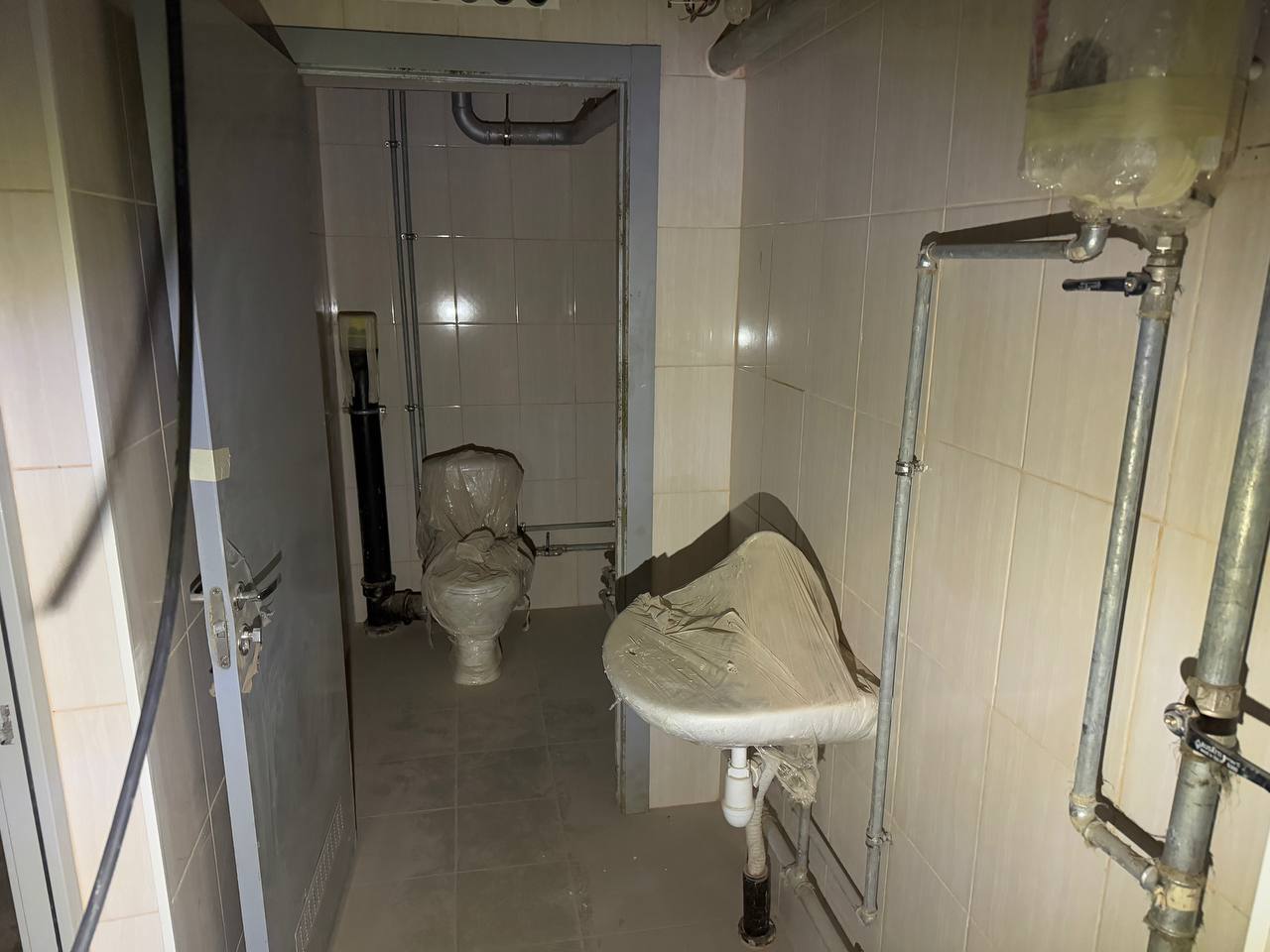 Сантехника в служебных помещениях ЮЗ уже монтируется.