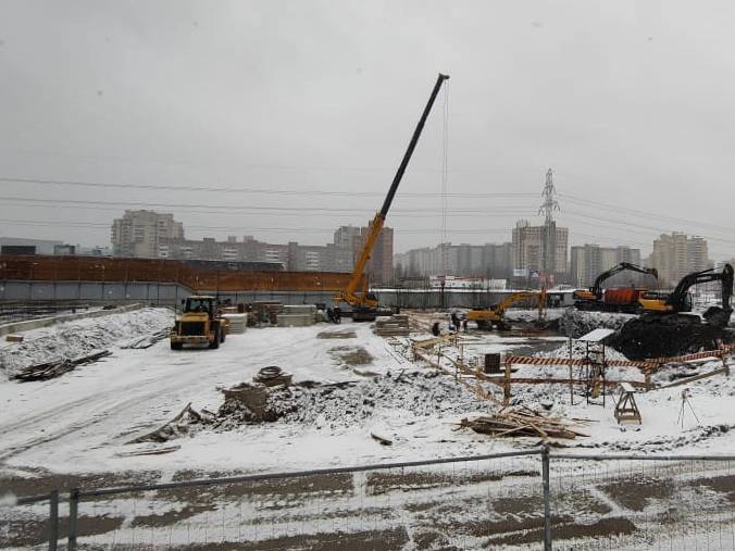 На строительной площадке в Приморском районе Санкт-Петербурга, рядом с пересечением Комендантского и Шуваловского проспектов, приступили сооружению форшахты выходной торцевой стены.