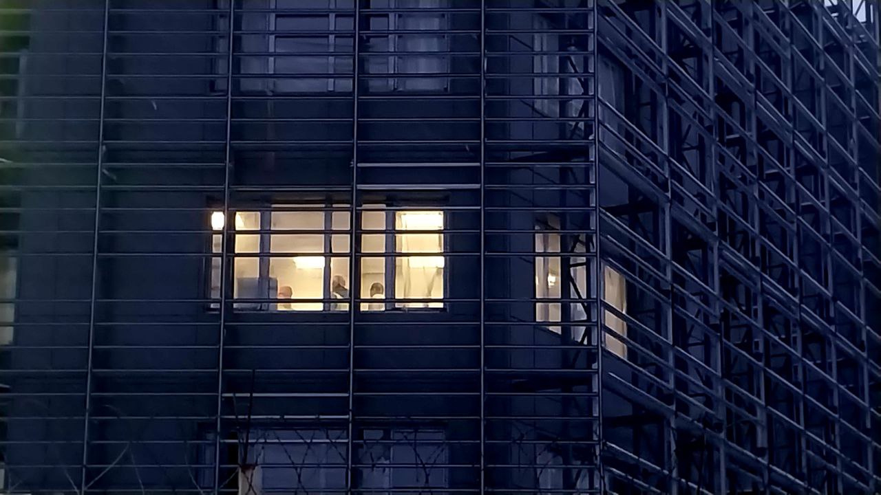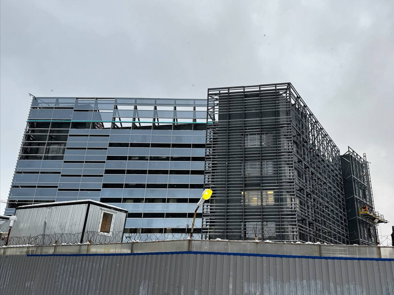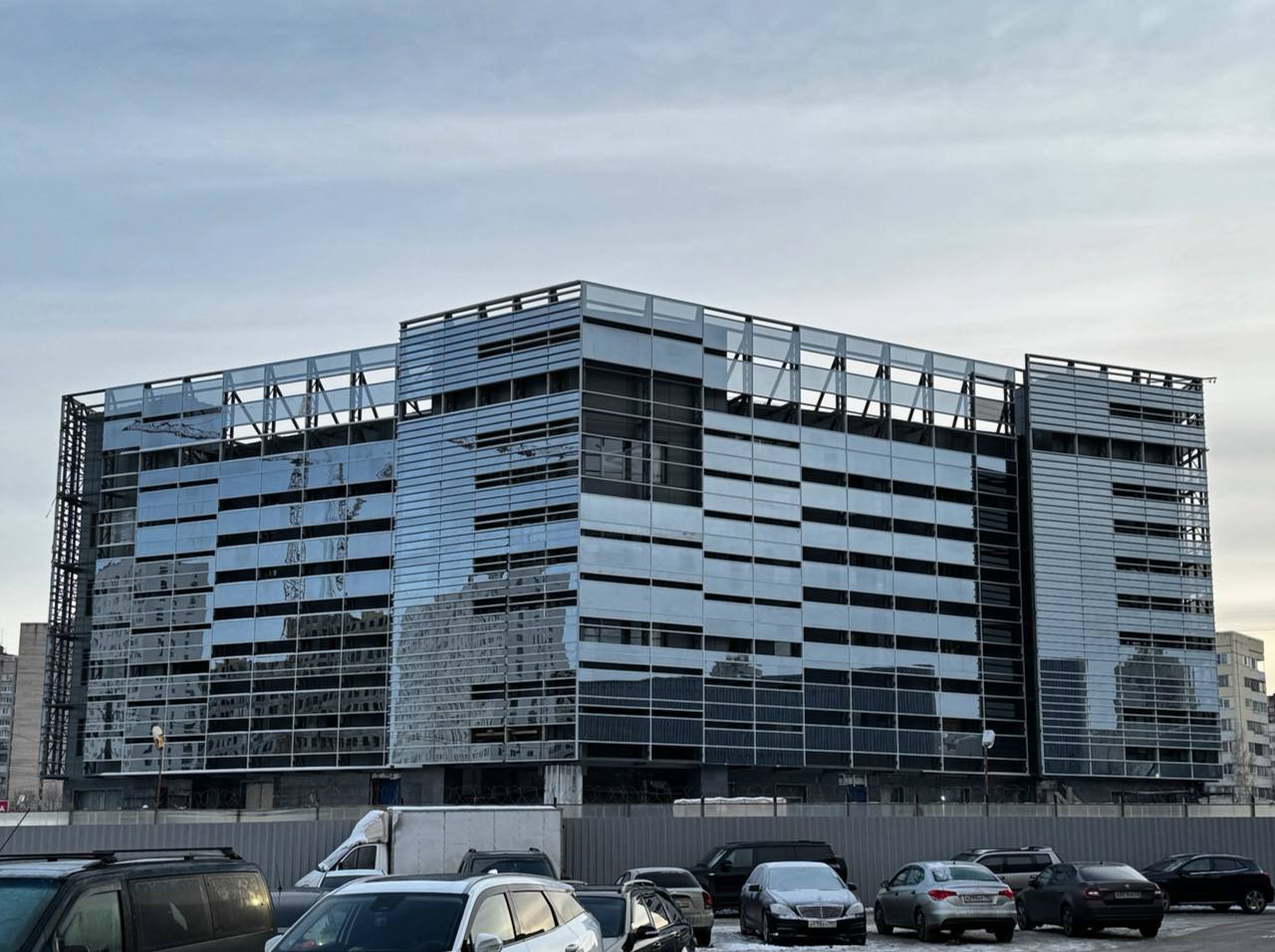 Без стеклянных элементов остается только одна грань здания.