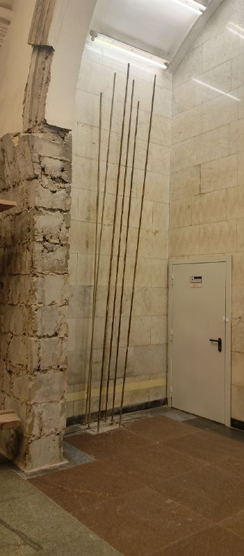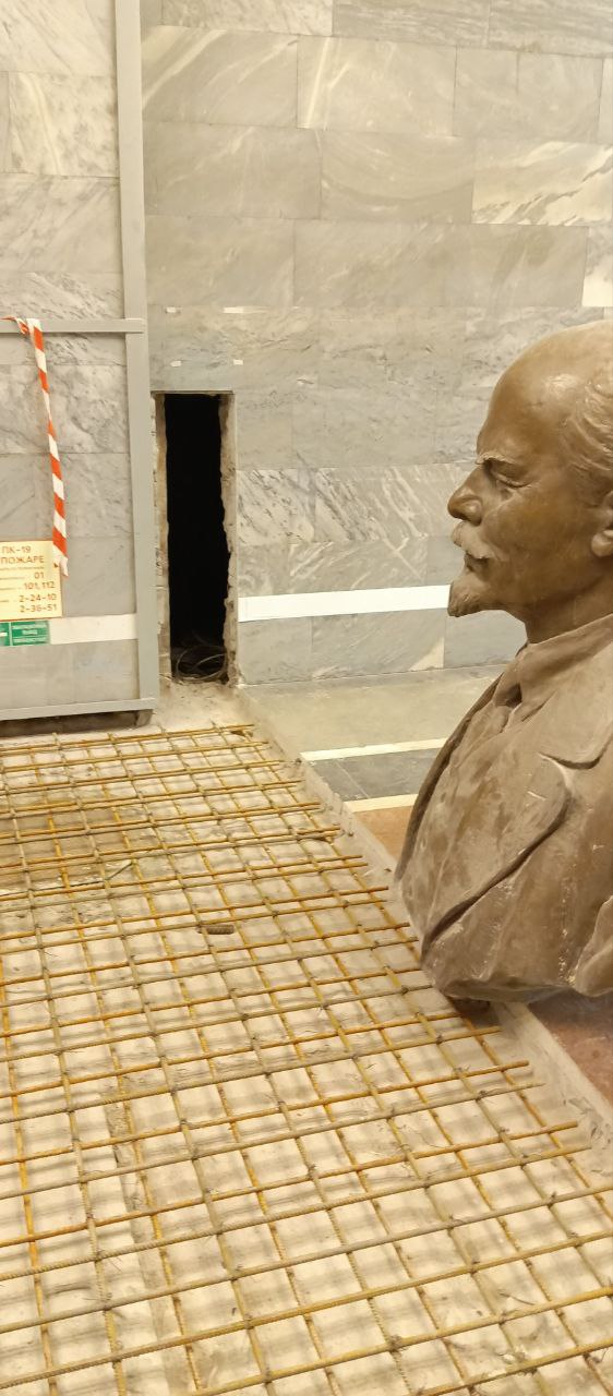 Бюст В.И. Ленина демонтирован, а на самой станции начинаются работы по армированию опор лестницы перехода.