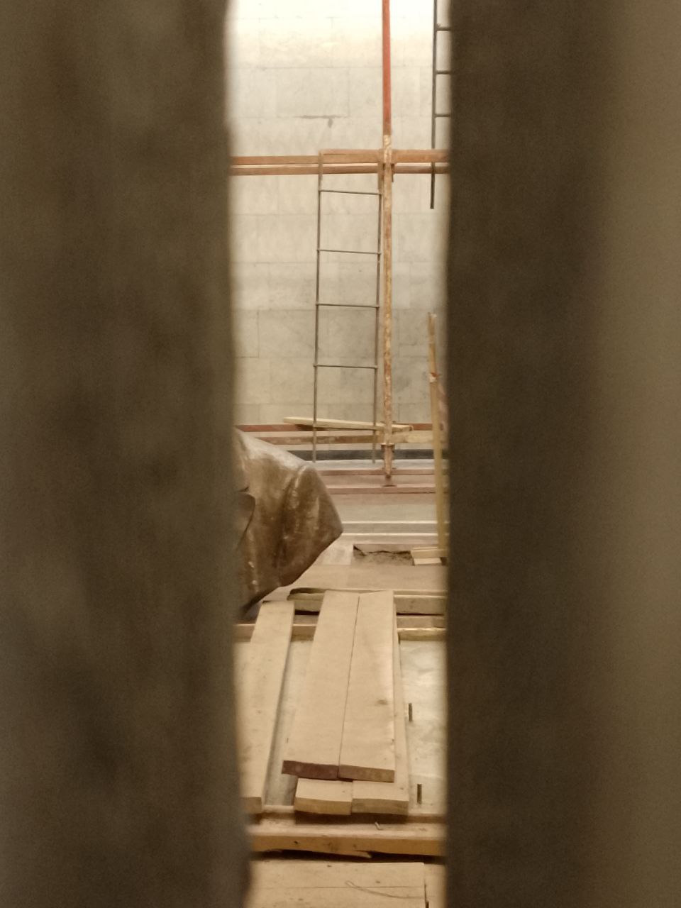Бедного Ленина хоть бы прикрыли чем. Нормально вообще, что произведение искусства постоянно находится в зоне проведения строительных работ?