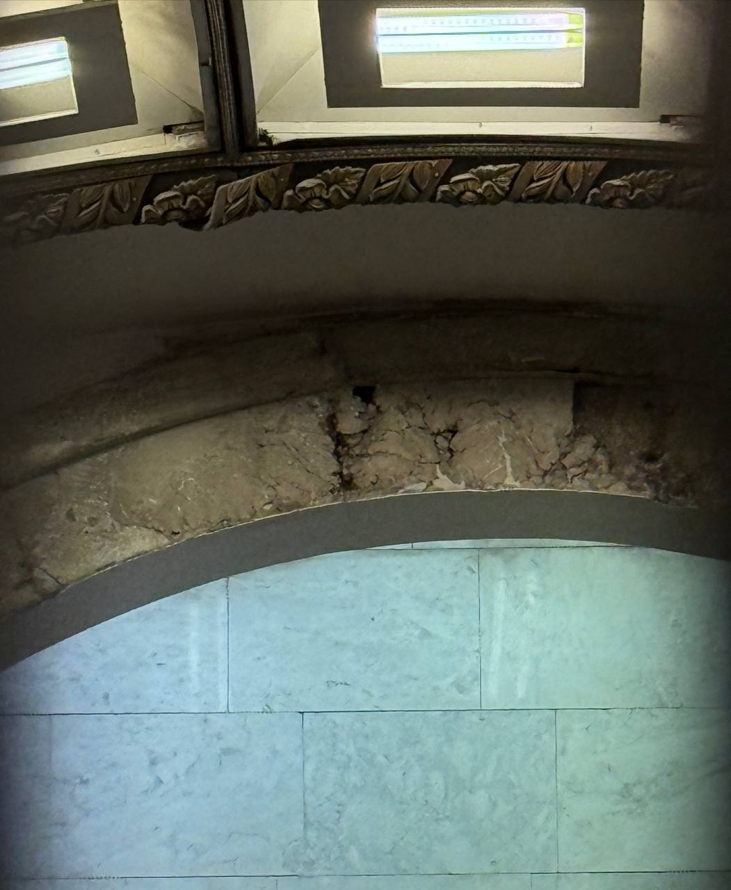 Судя по стяжке пола, которая производится за отгороженным участком, часть арматуры будущего перехода уже устроена. При этом со стен станции, открытой в 1955 году, пропадает мрамор и элементы украшения.