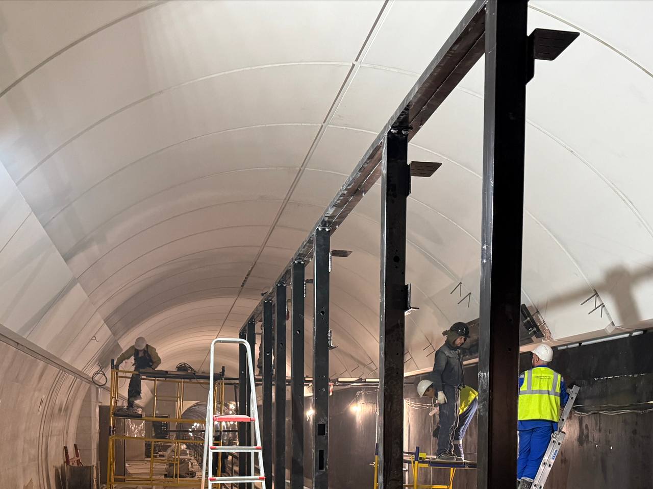 Так выглядит вестибюль станции «Юго-Западная» Красносельско-Калининской линии Петербургского метрополитена со стороны жилого комплекса строящегося на противоположной стороне улицы Маршала Казакова.