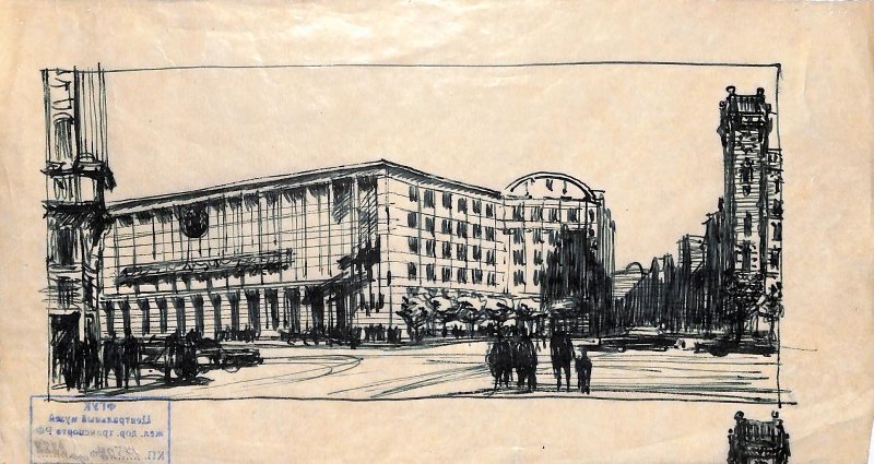 И, напоследок, ещё один эскиз вестибюля «Горьковской» 1944 года