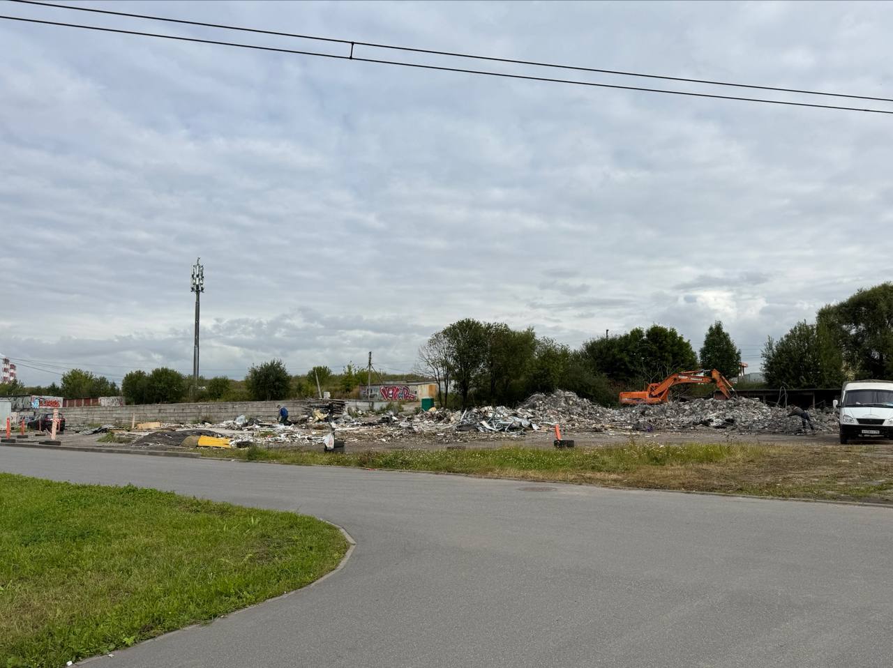 Вчера 18.08.2025г. Завезли экскаватор и приступили к сносу ангаров автосервиса (ранее после того как автосервисы сьехали они стояли заброшенные)