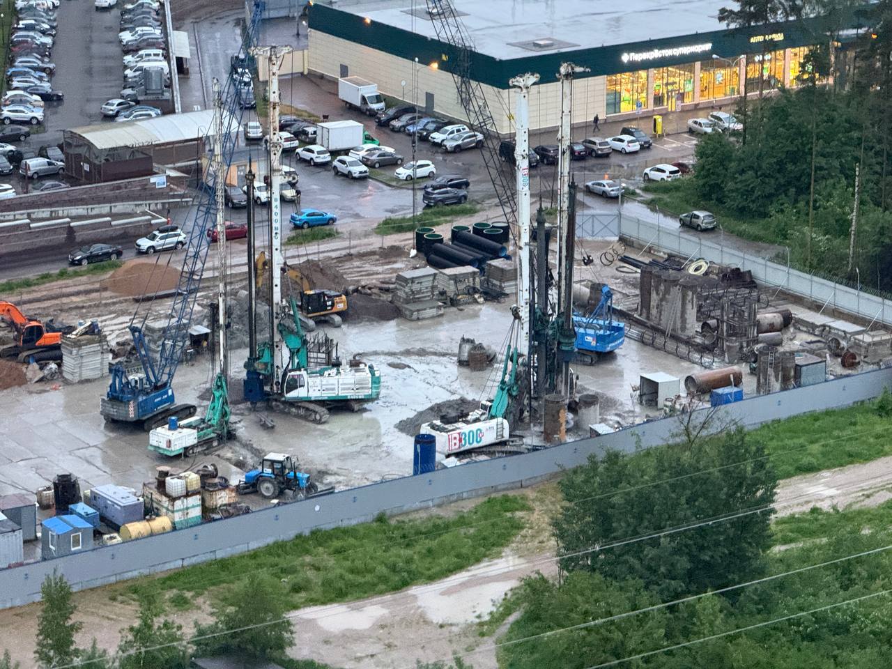 На участке Шуваловского проспекта между проспектом Королёва и Парашютной улицей, активно идут работы по сооружению ограждающей конструкции демонтажного котлована для ТПМК «Надежда».