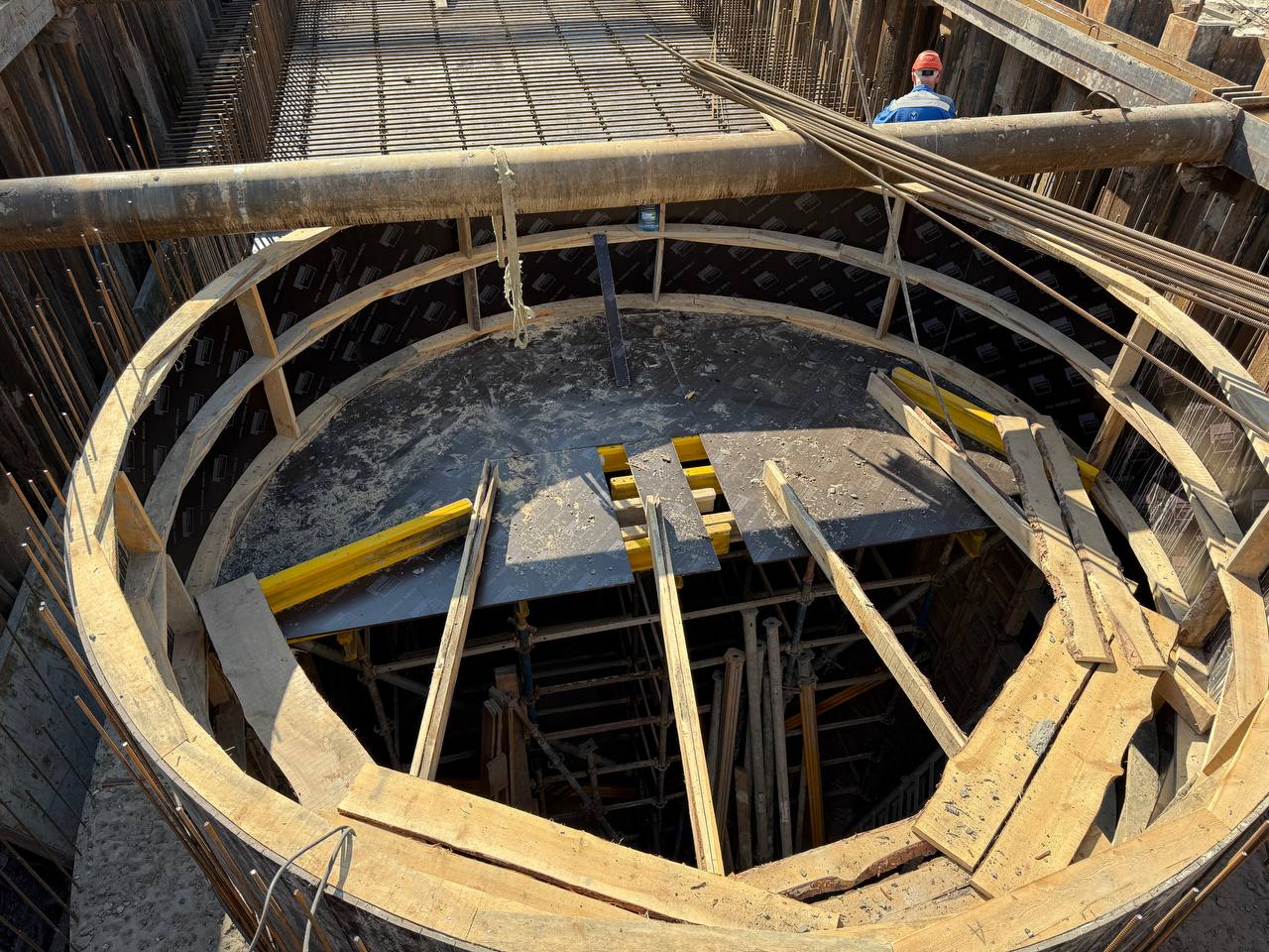 Здесь выработали грунт до проектной глубины и сейчас горнопроходческих работ не ведётся.
