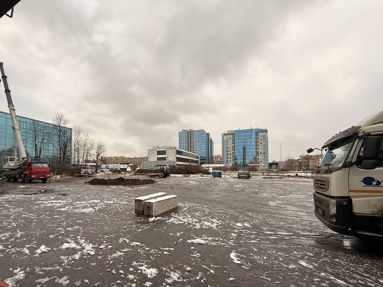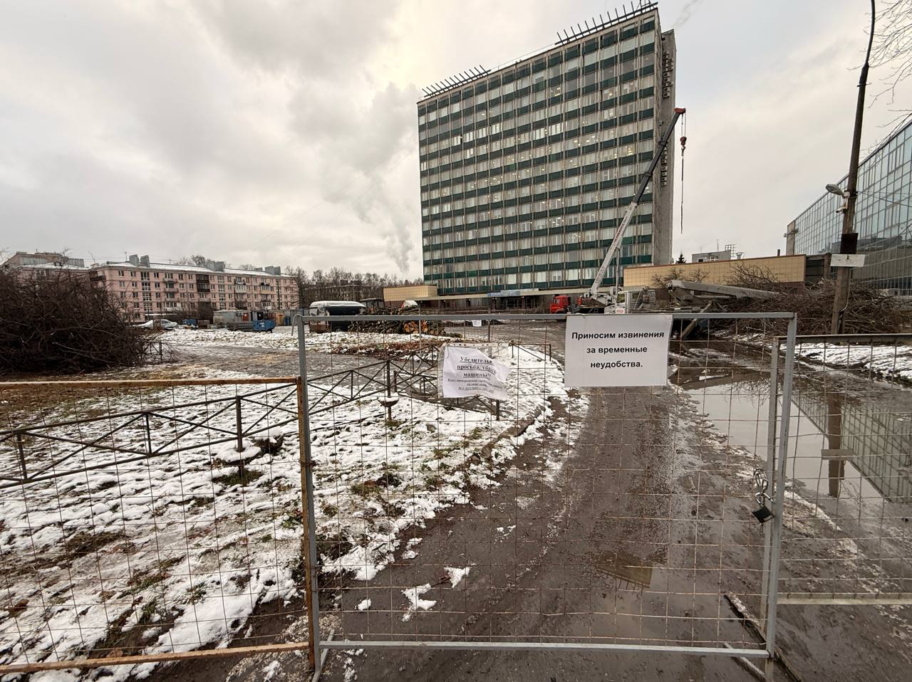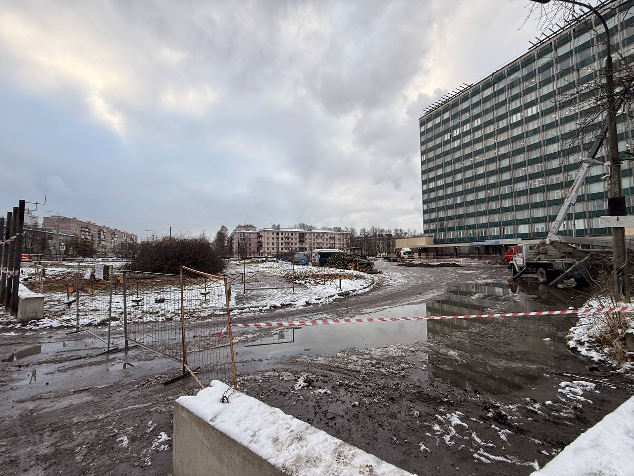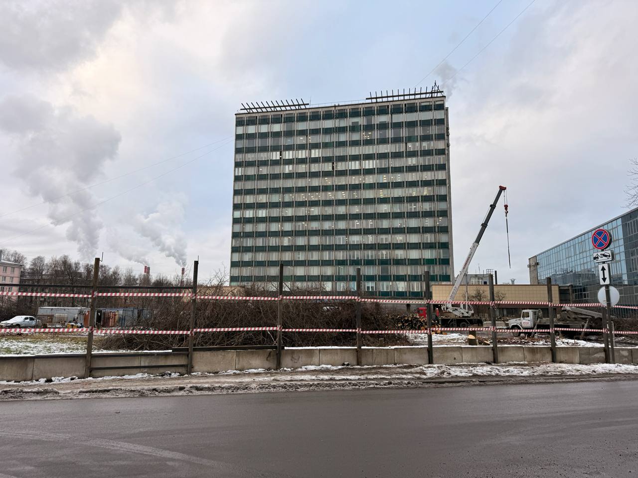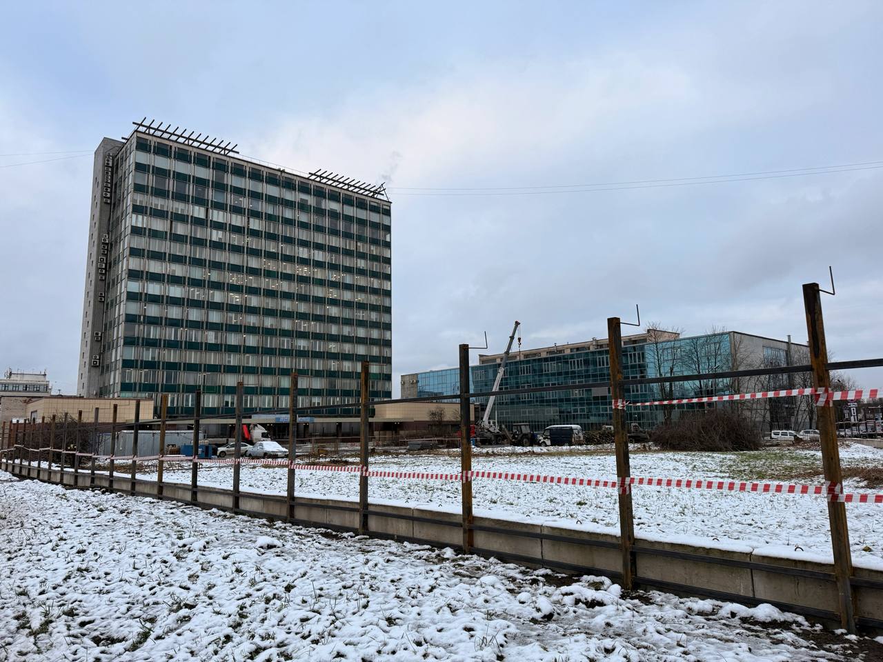 На парковке ЦНИИСЭТа прямо сейчас возводят бытовочный городок