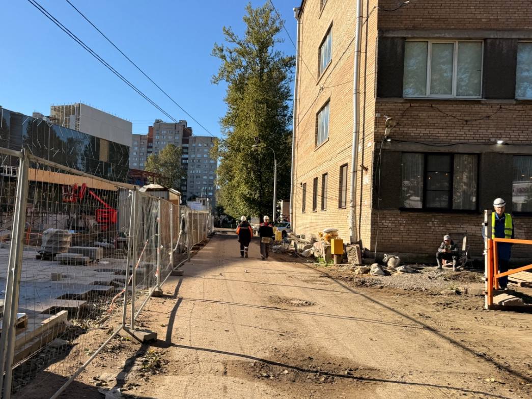 - Завершили асфальтирование проезда и устройство тротуаров между вестибюлем и ДК имени И.И. Газа. Раньше здесь был внутридворовый проезд с плохим покрытием и без тротуаров.