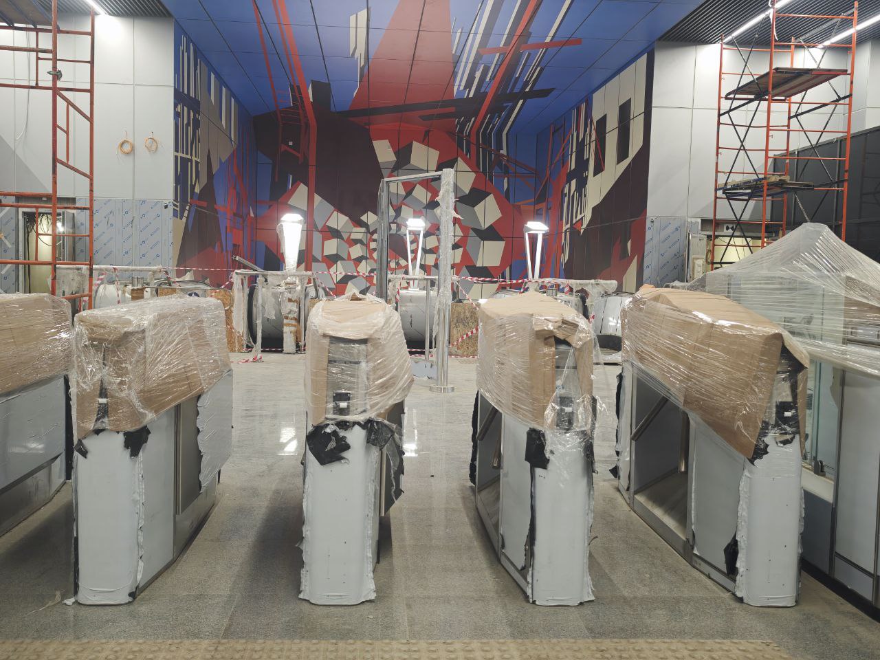 В кассовом зале вестибюля станции «Путиловская» строящейся Красносельско-Калининской линии петербургского метрополитена завершаются отделочные работы.