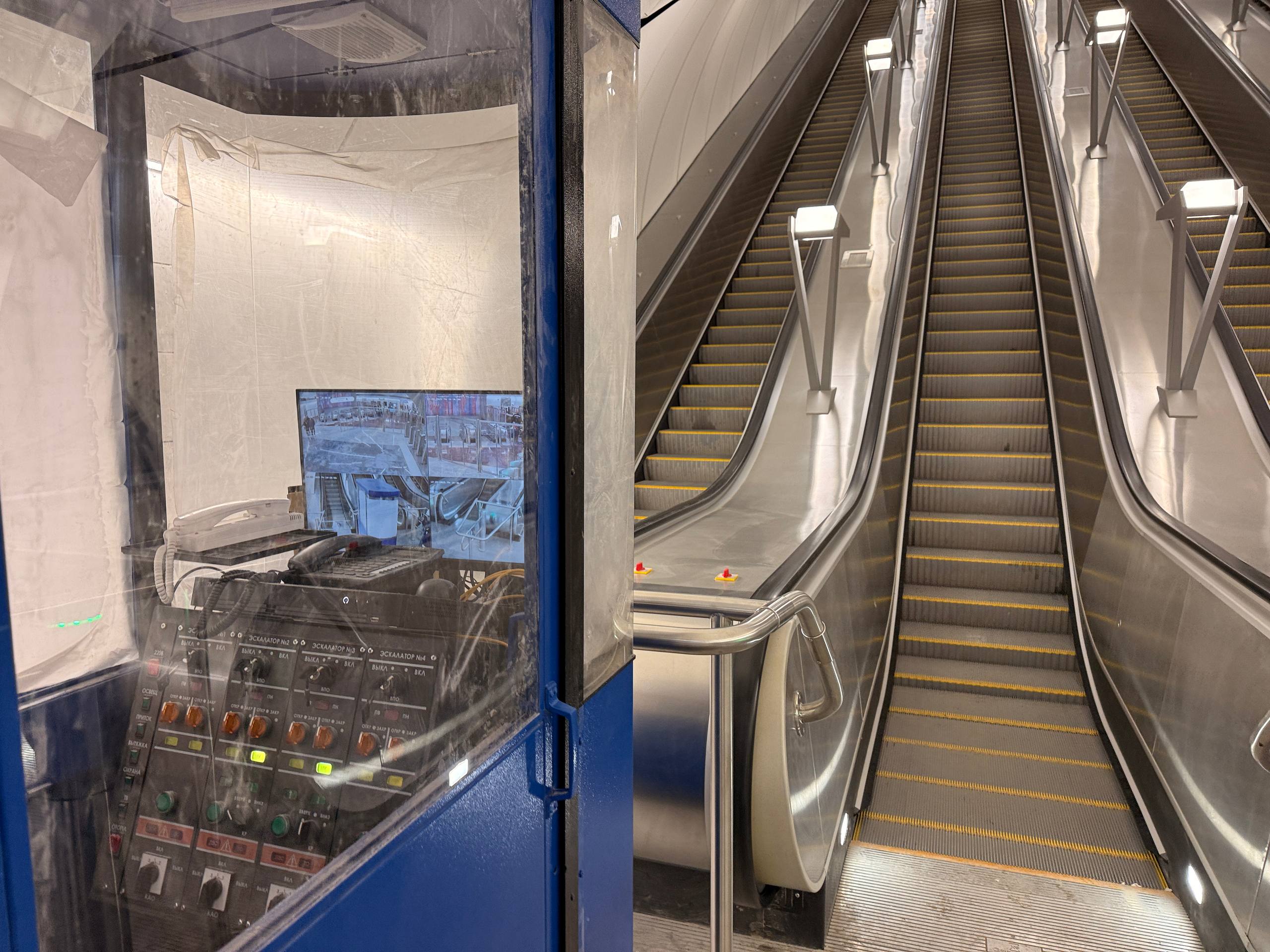Испытание эскалаторов под нагрузкой сотрудниками МСС.