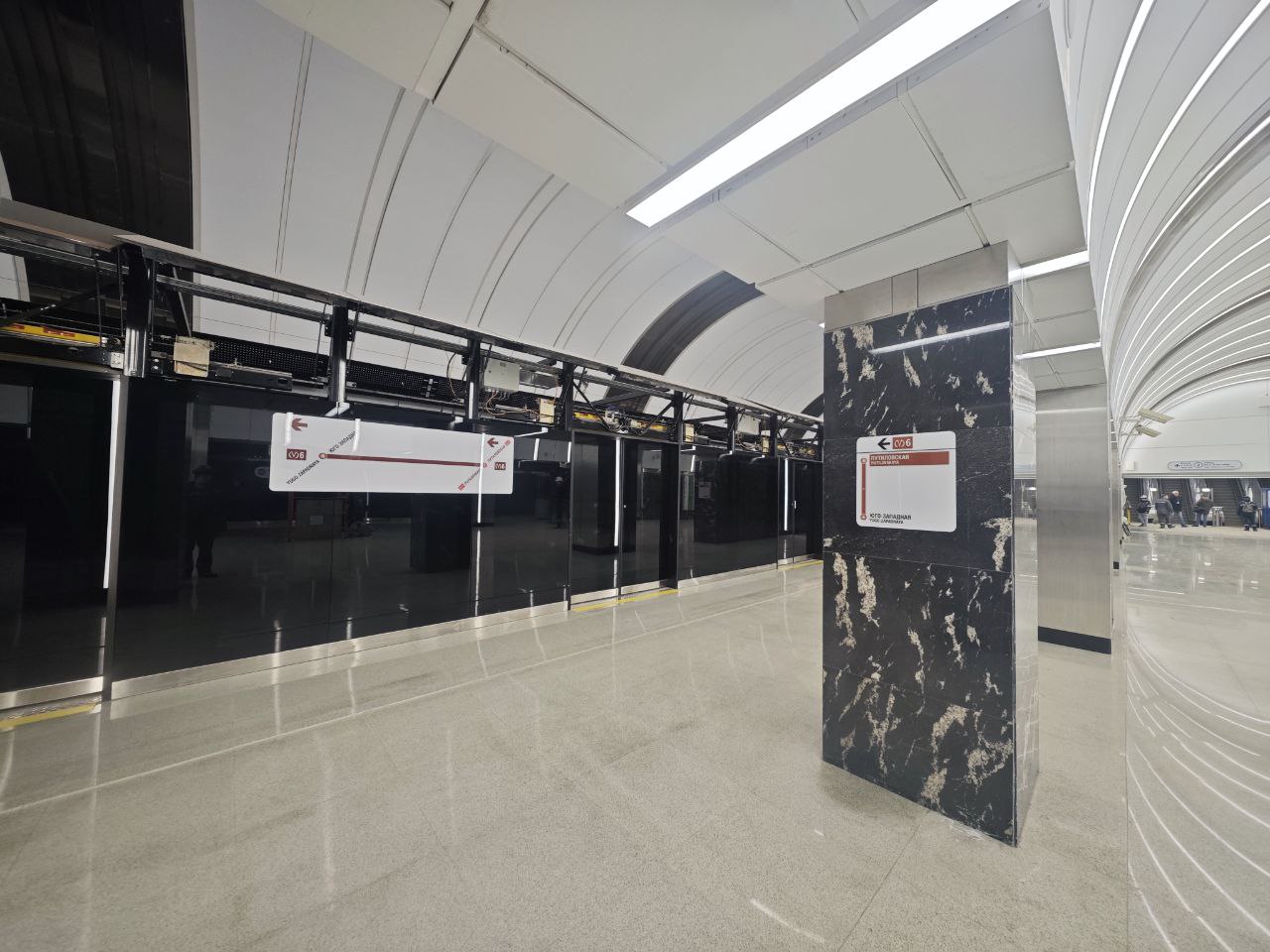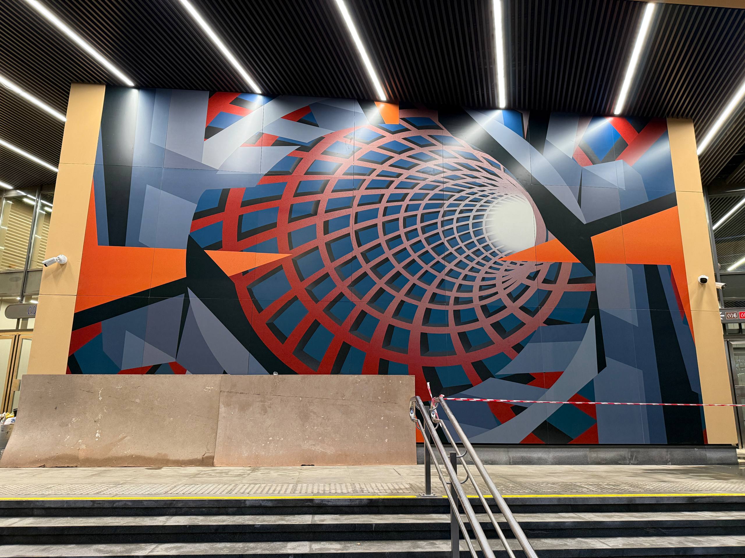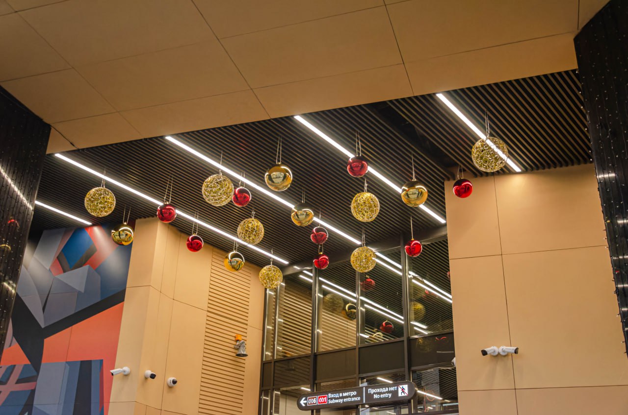 Завершена облицовка вестибюля панелями из фибробетона и смонтировано декоративное панно. Завершена облицовка ступеней, пола и пандуса для маломобильных пассажиров гранитными плитами. Установлены поручни на лестнице перед входом и выходом, а также перила ограждения пандуса.