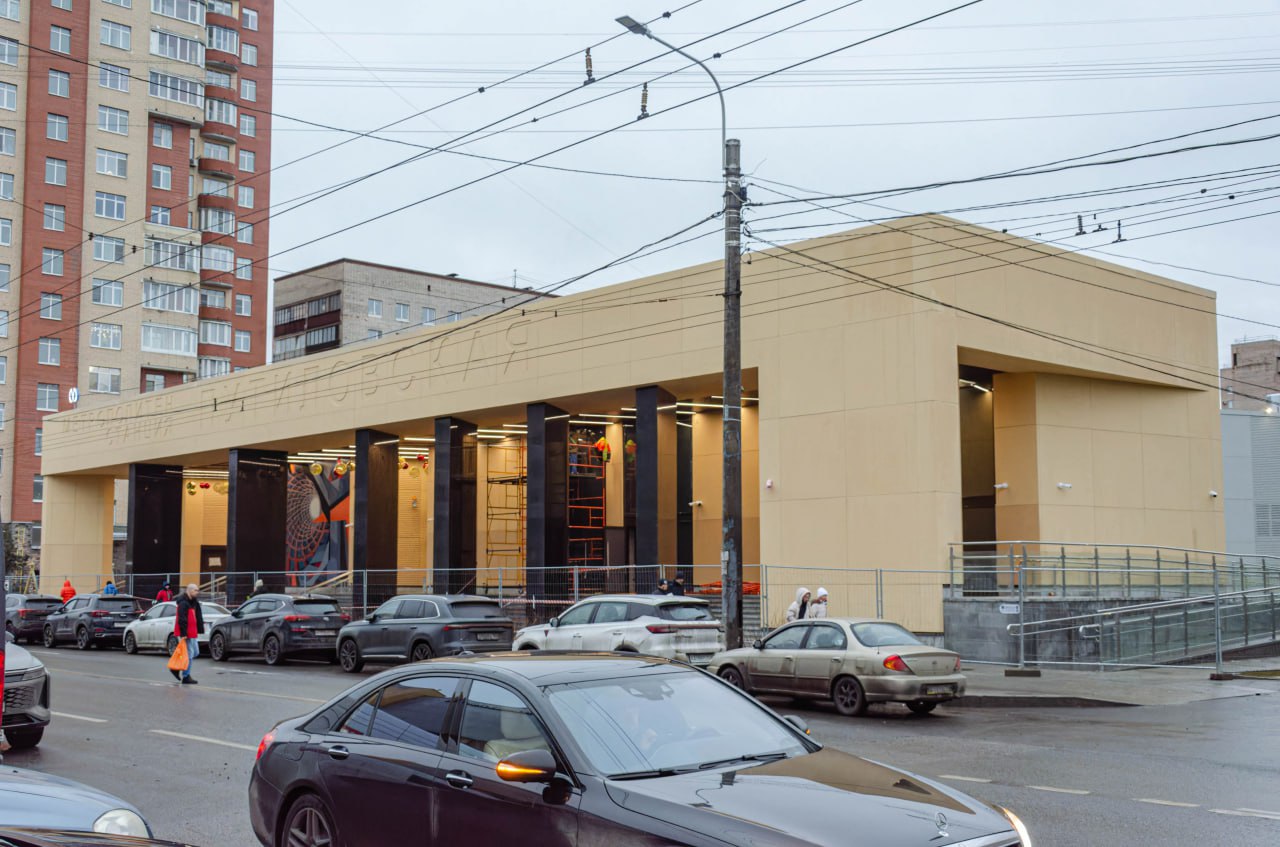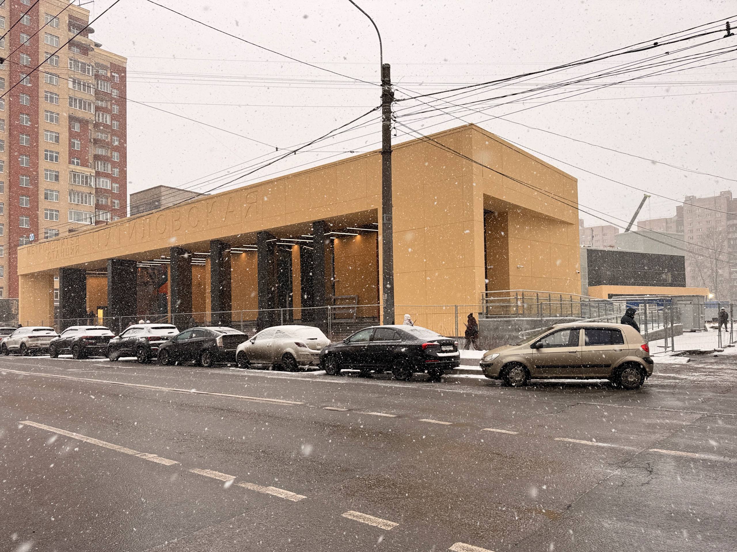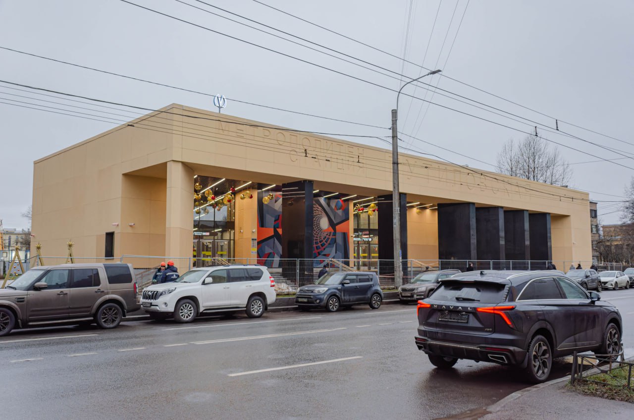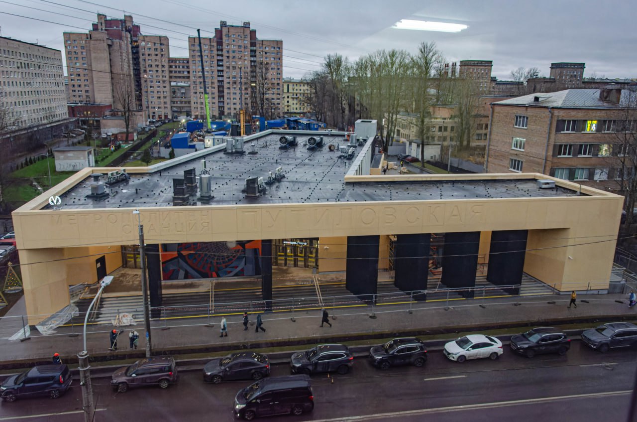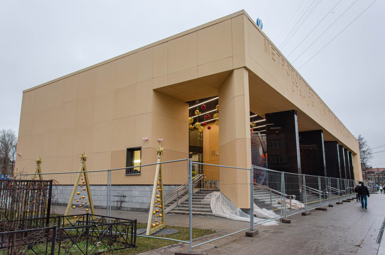 На строительной площадке вестибюля станции «Путиловская» Красносельско-Калининской линии метрополитена Петербурга завершены фасадные работы.