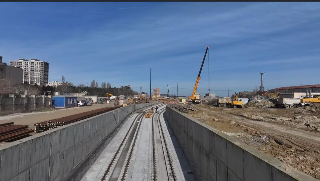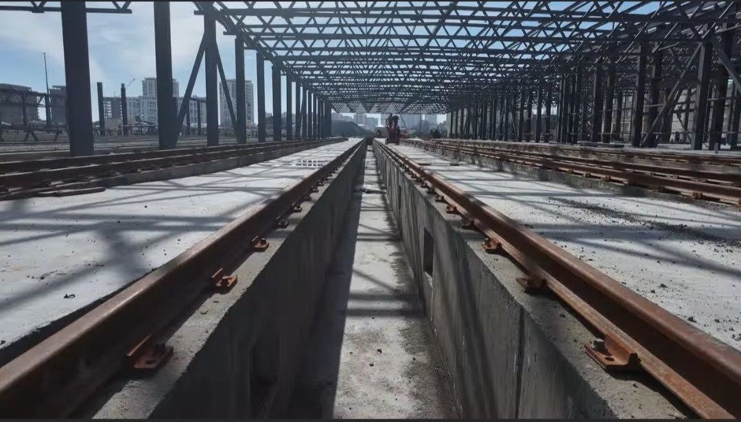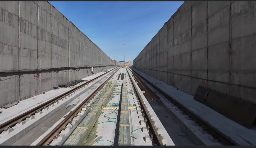 Это строительство нового автомобильного и пешеходного тоннеля под территориией электродепо. Из-за этого завершение работ в самом депо немного задержится. Ранее там уже был пешеходный переход, он виден на фото и показан красным. Новый автотоннель и пешеходный переход указал зеленым.