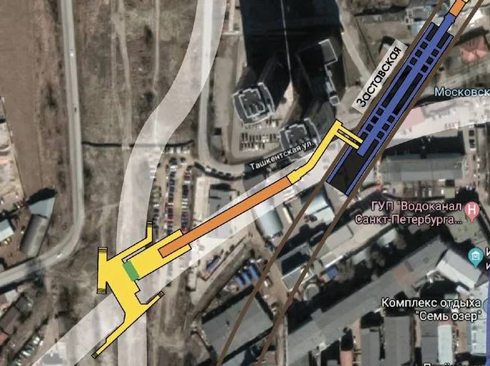Так выглядит сегодня строительная площадка будущего подземного вестибюля станции «Заставская» — второй очереди Красносельско-Калининской линии метрополитена Петербурга.