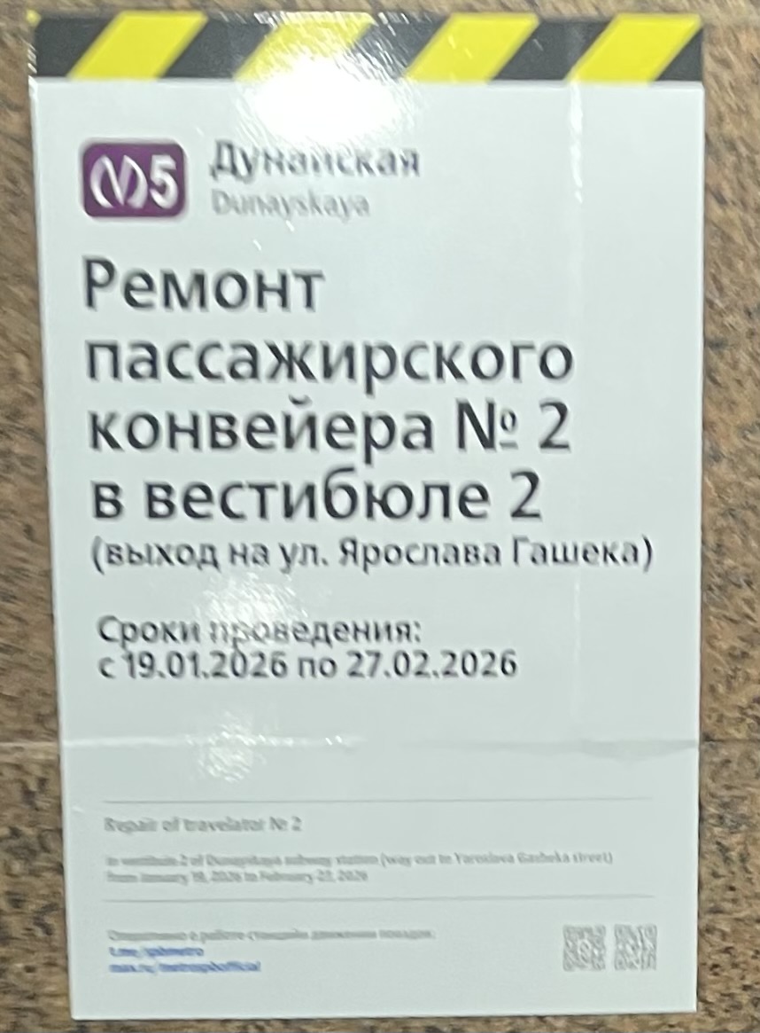 Сразу после запроса в комитет появилась табличка со сроками ремонта сломанного траволатора.