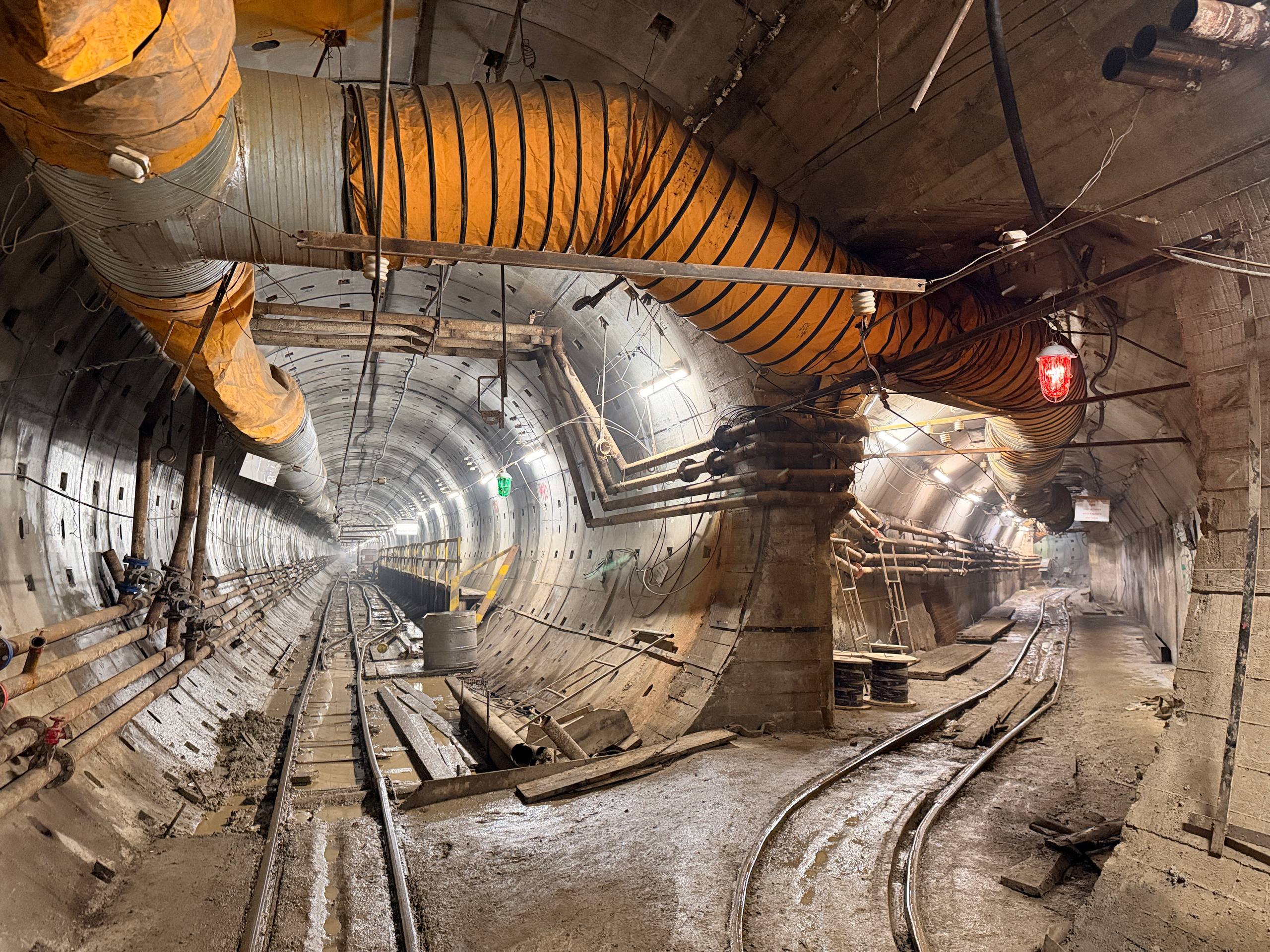 Тоннелепроходческий щит, начавший проходку второго пути 14 февраля 2024 года, уже преодолел отметку в два километра. Комплекс успешно миновал станцию «Броневая» (3-4 фото) и движется к «Заставской». На данном этапе от «Броневой» в сторону следующей станции пройдено уже около двухсот метров (1-2 фото) тоннеля из тысяча восьмисот метров.