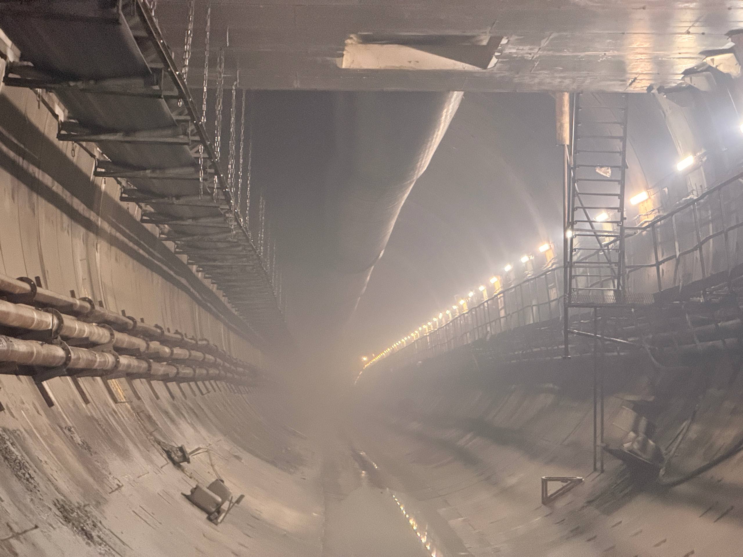 На дистанции между «Беговой» и «Богатырской» также сооружают плиту вентиляционного перекрытия – уже смонтировано почти 600 метров. Плита размещается на высоте 4,5 метра и в будущем будет разделять транспортную зону и вентиляционный канал.