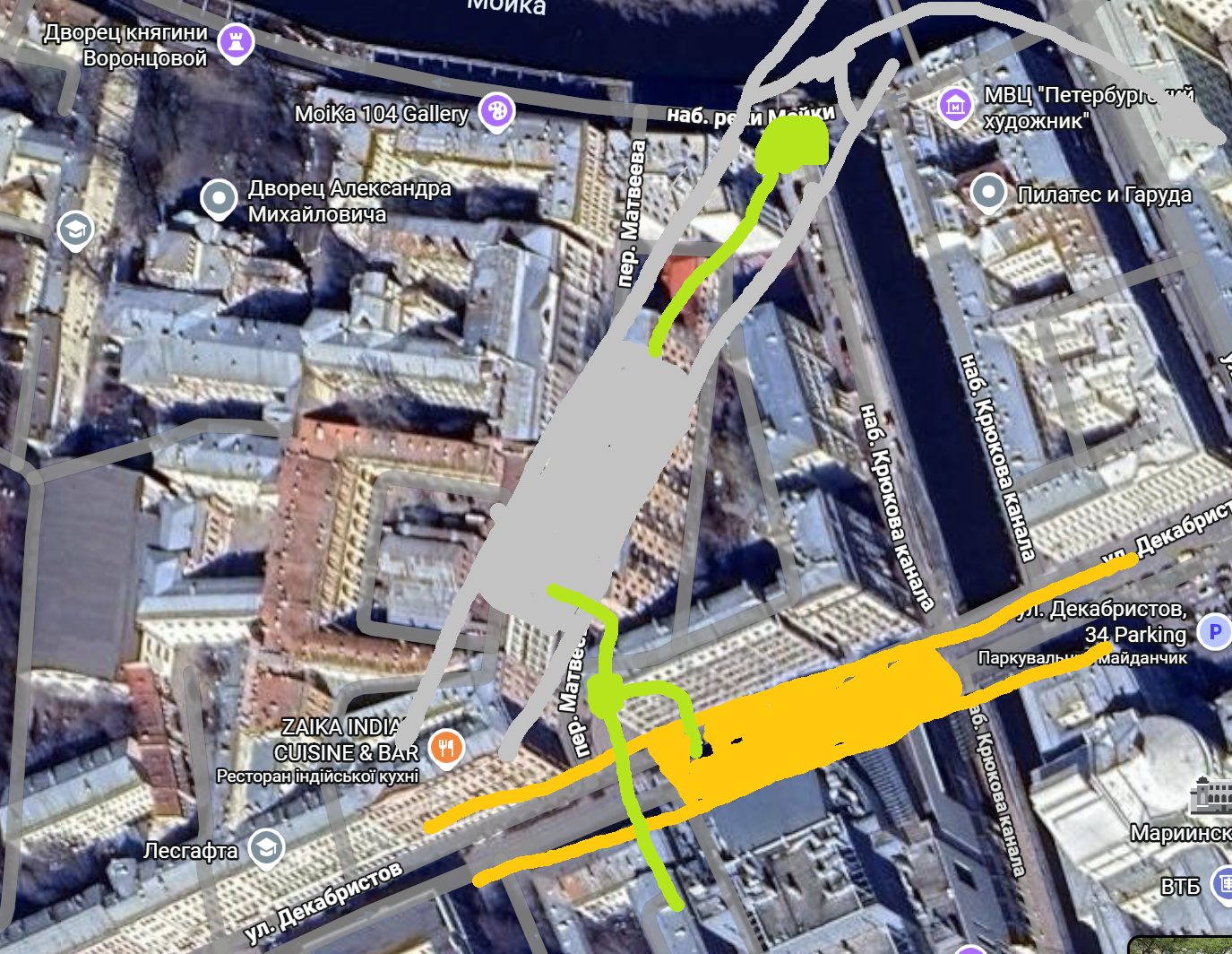 Театральная-2 вообще не там. посмотрите ППТ первой очереди Адмиралтейского радиуса. И, если не будет нежданчиков с размывами при геологоразведке, она тут и останется т.к. как и в случае ЦУ ККЛ, место в историческом центре очень ограничено и сильнее чем на несколько десятков метров, от перерисовываемых уже лет 20 техзон не убежишь. У Т-2 северный выход к наб. Мойки, ССВ к тупику Спасской, а вот тут можно было бы совместить выход с обеих сразу, и переход - если запроектировать внизу поперечную камеру (180градусную подкову, гладкую, перестраивать потом в камеру будет намного сложнее чем сделать камеру сразу сейчас)