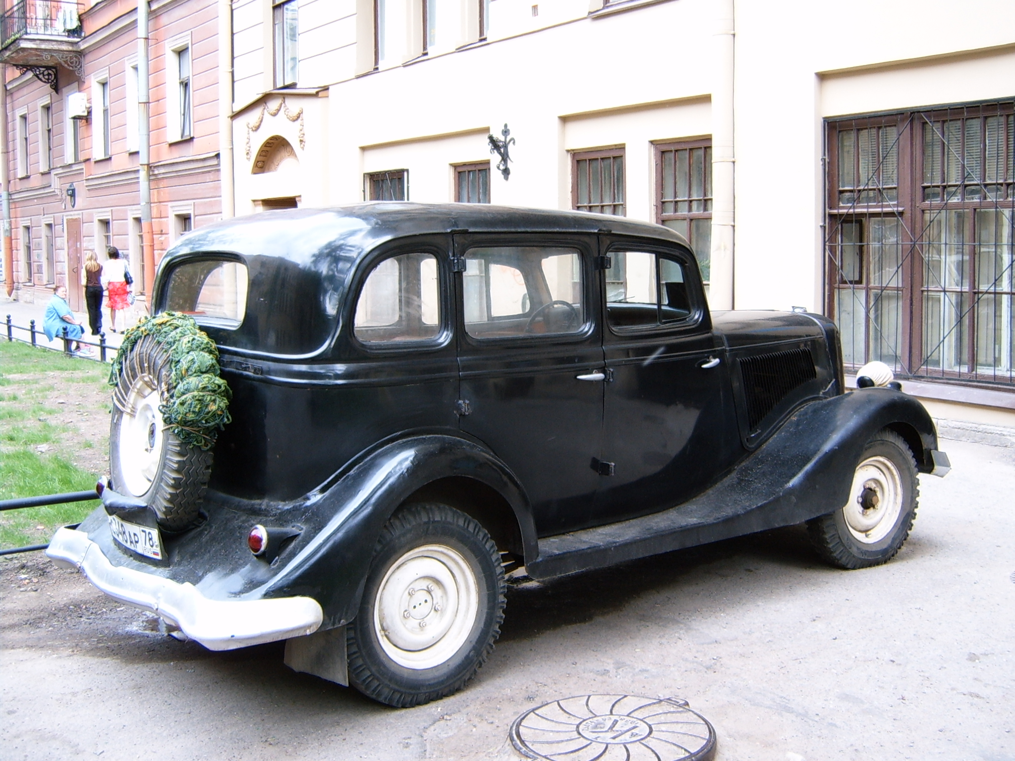 Это очень интересная Победа, спасибо за фотки и наводку: она выпущена в 1950 году, и подверглась серьёзному колхозному тюнингу: решётка от более поздней модификации 55-58 годов, задние фонари от ГАЗ-24, накладка на задей стойки от неё же, накладка над задним номерным знаком от третьей серии ГАЗ-21. Также у Побед никогда не было передних отдельных указателей поворота и повторителей поворотников на крыле.