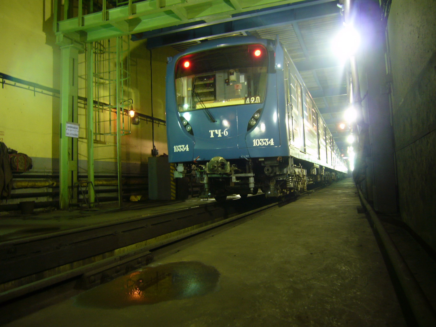 Сегодня в 12.52 на ст.м.Владимирская был случайно пойман состав из вагонов 81-540.2/81-714.5П 2007 года выпуска №10348-1758-1759-1761-1760-10349. Следовал в ТЧ-4 Северное. На головных вагонах установлена система автоведения ПА-М.