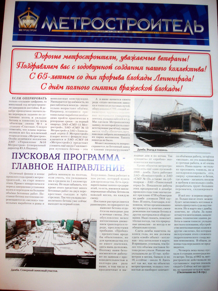 МЕТРОСТРОИТЕЛЬ - Январь 2008