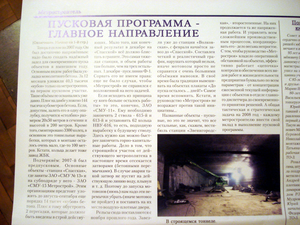 Re: МЕТРОСТРОИТЕЛЬ - Январь 2008