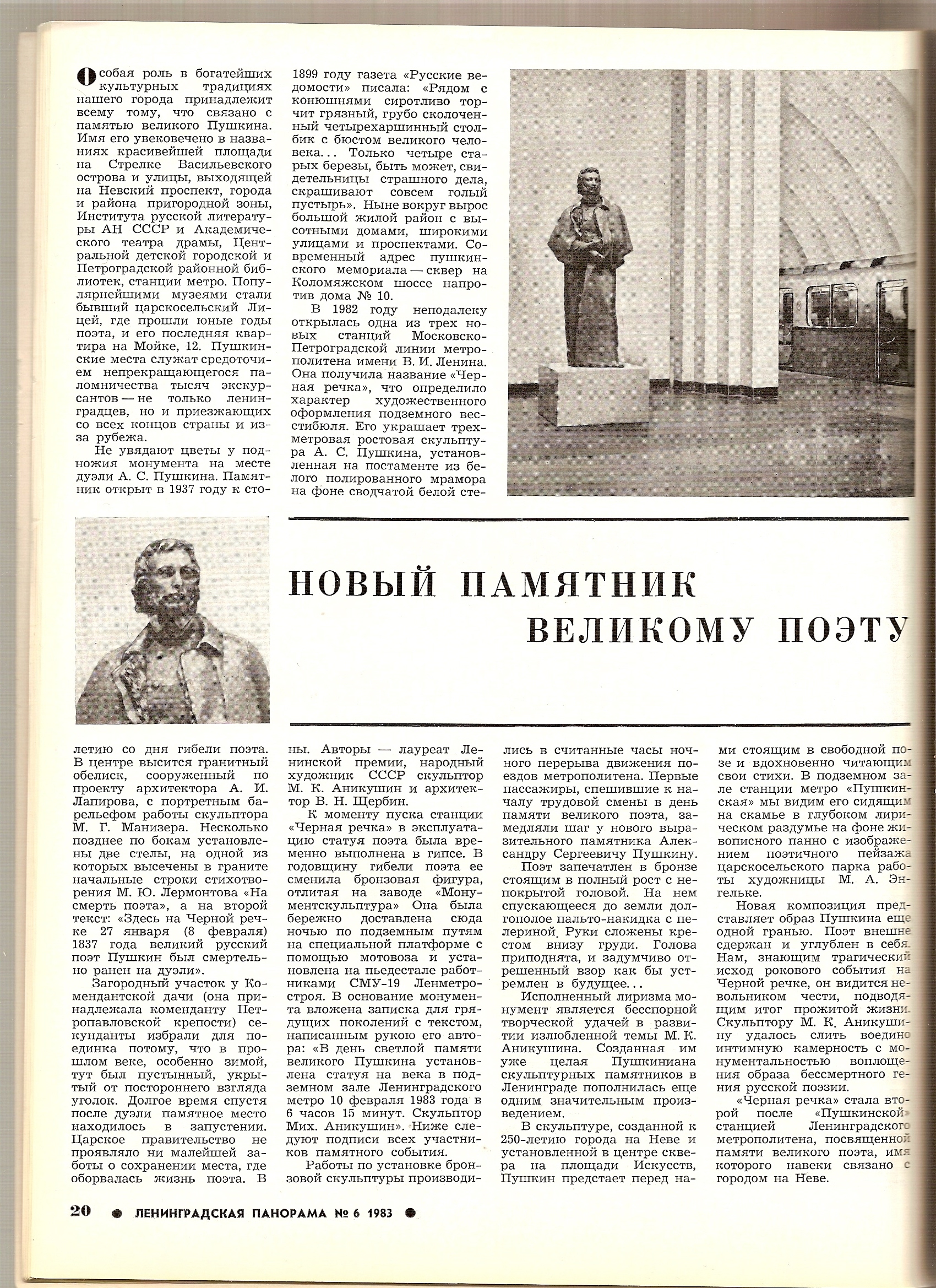 Информация об установке памятника А.С. Пушкину на станции в 1983году (из журнала "Ленинградская Панорама" 1983г №6). Непосредственно о памятнике и его установке речь в статье идёт с первого абзаца второго столбца.