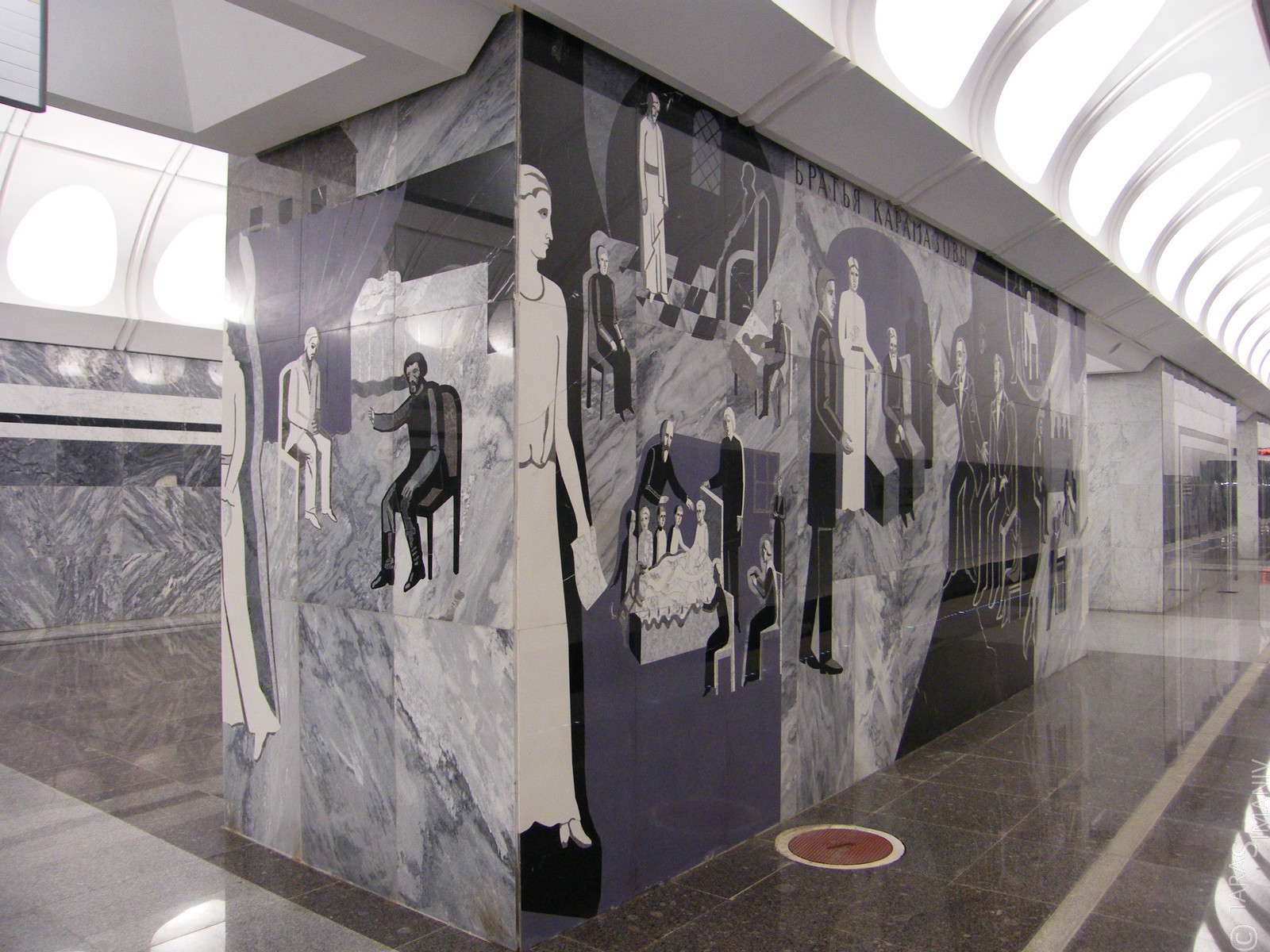 Я вот о чем подумал, посмотрев сюжеты и фотки. Теперь для суицидников появилась самая подходящая для них станция. Если раньше на мозаиках изображалось сплошное веселье, самолеты, счастливые крестьяне и радостные спортсмены, то нынешние убийцы с топорами, пускающие себе пулю в лоб субъекты и прочие черно-белые личности совсем не будут способствовать психической стабильности народа в подземелье.