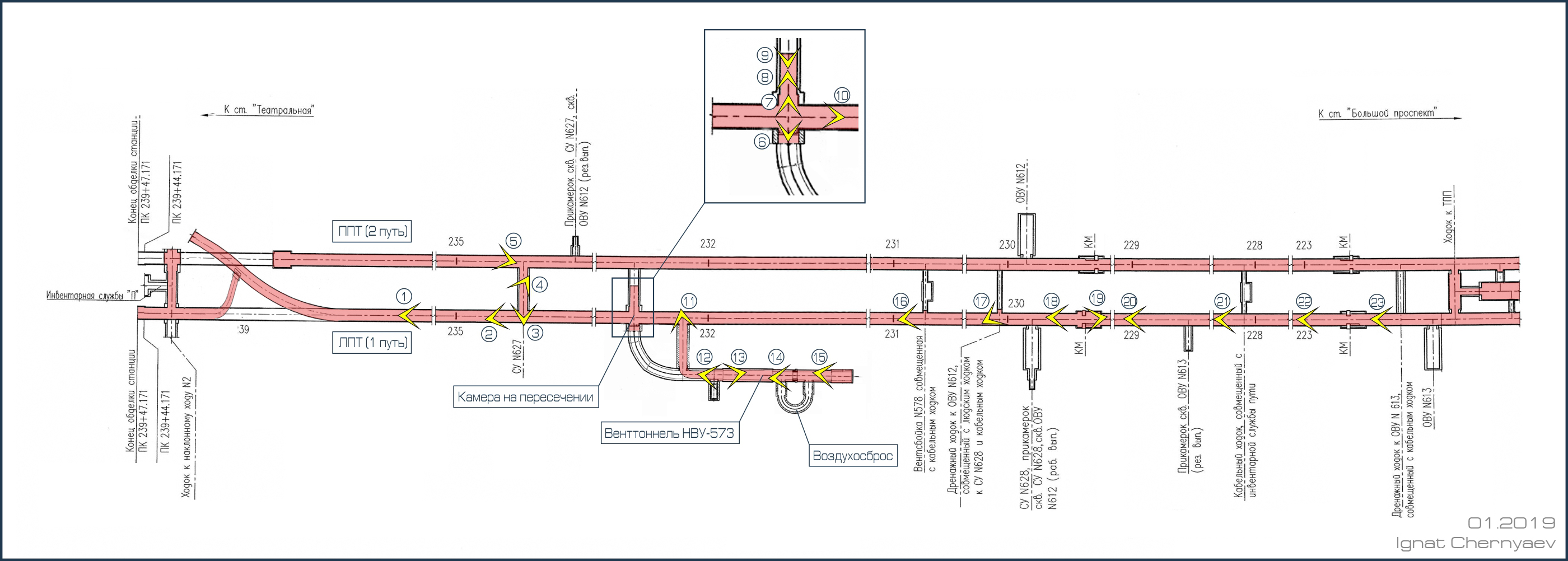 6. Так что идём дальше по ЛПТ до камеры на пересечении с НВУ-573. Вид в сторону венттоннеля к ППТ: